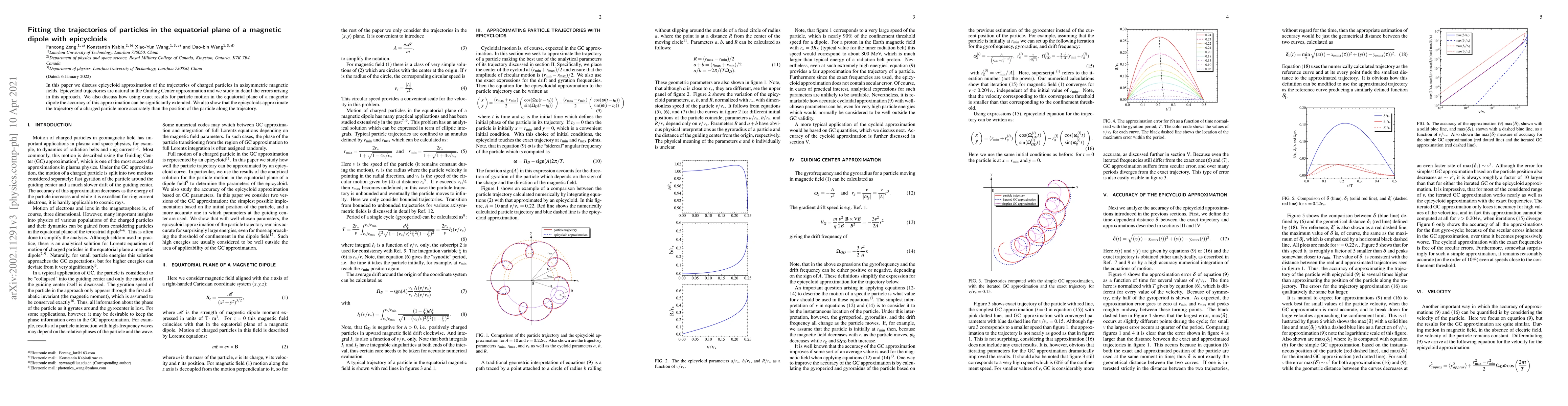In this paper we discuss epicycloid approximation of the trajectories of charged particles in axisymmetric magnetic fields. Epicycloid trajectories are natural in the Guiding Center approximation and we study in detail the errors arising in this approach. We also discuss how using exact results for particle motion in the equatorial plane of a magnetic dipole the accuracy of this approximation can be significantly extended. We also show that the epicycloids approximate the trajectory of a charged particle more accurately than the position of the particle along the trajectory.