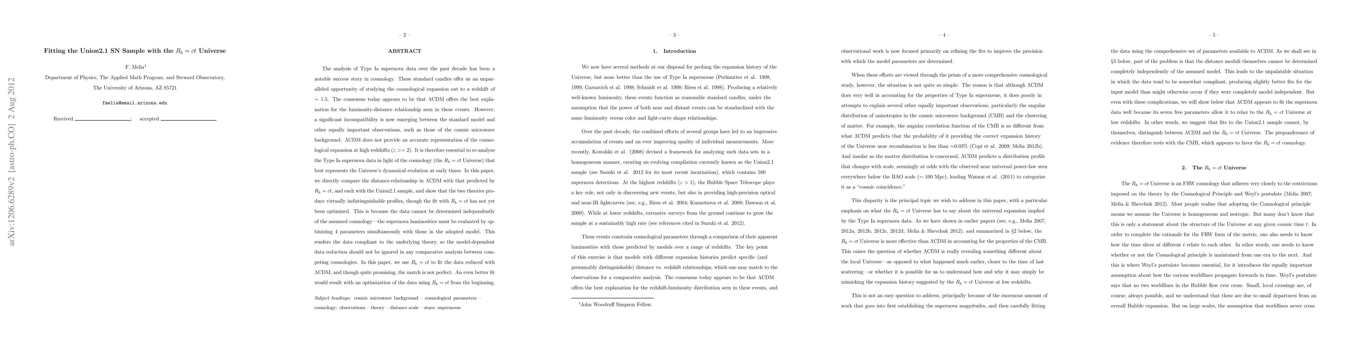 The analysis of Type Ia supernova data over the past decade has been a notable success story in cosmology. These standard candles offer us an unparalleled opportunity of studying the cosmological expansion out to a redshift of ~1.5. The consensus today appears to be that LCDM offers the best explanation for the luminosity-distance relationship seen in these events. However, a significant incompatibility is now emerging between the standard model and other equally important observations, such as those of the cosmic microwave background. LCDM does not provide an accurate representation of the cosmological expansion at high redshifts (z>>2). It is therefore essential to re-analyze the Type Ia supernova data in light of the cosmology (the R_h=ct Universe) that best represents the Universe's dynamical evolution at early times. In this paper, we directly compare the distance-relationship in LCDM with that predicted by R_h=ct, and each with the Union2.1 sample, and show that the two theories produce virtually indistinguishable profiles, though the fit with R_h=ct has not yet been optimized. This is because the data cannot be determined independently of the assumed cosmology---the supernova luminosities must be evaluated by optimizing 4 parameters simultaneously with those in the adopted model. This renders the data compliant to the underlying theory, so the m odel-dependent data reduction should not be ignored in any comparative analysis between competing cosmologies. In this paper, we use R_h=ct to fit the data reduced with LCDM, and though quite promising, the match is not perfect. An even better fit would result with an optimization of the data using R_h=ct from the beginning.