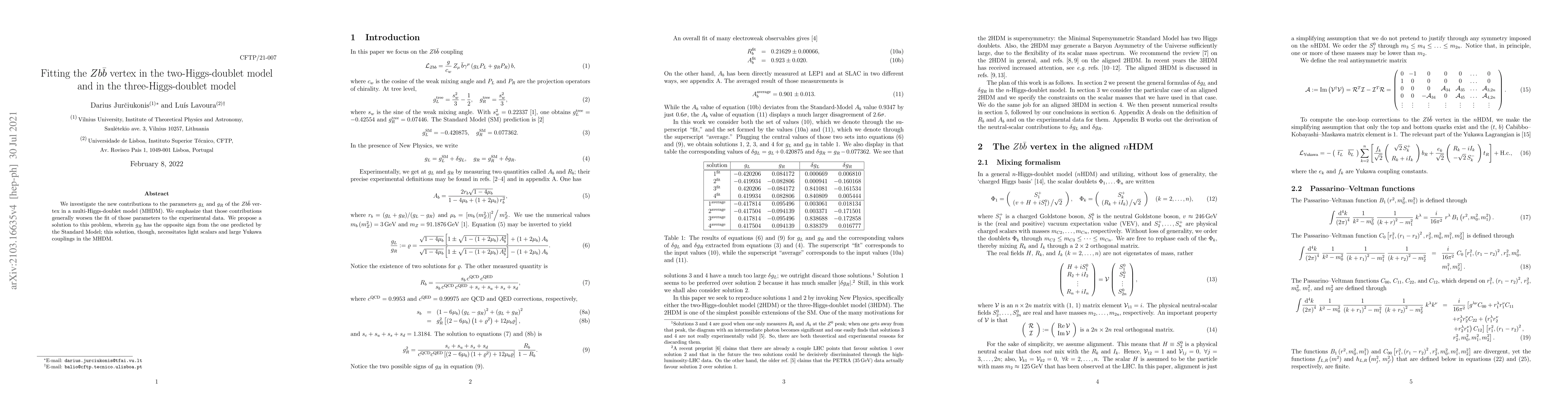 The paper presents a detailed analysis of the Zb̄b vertex fitting in 2HDM and 3HDM, introducing a novel approach to address the discrepancy in g_R by proposing a solution with g_R having the opposite sign from the Standard Model, supported by light scalars and large Yukawa couplings.