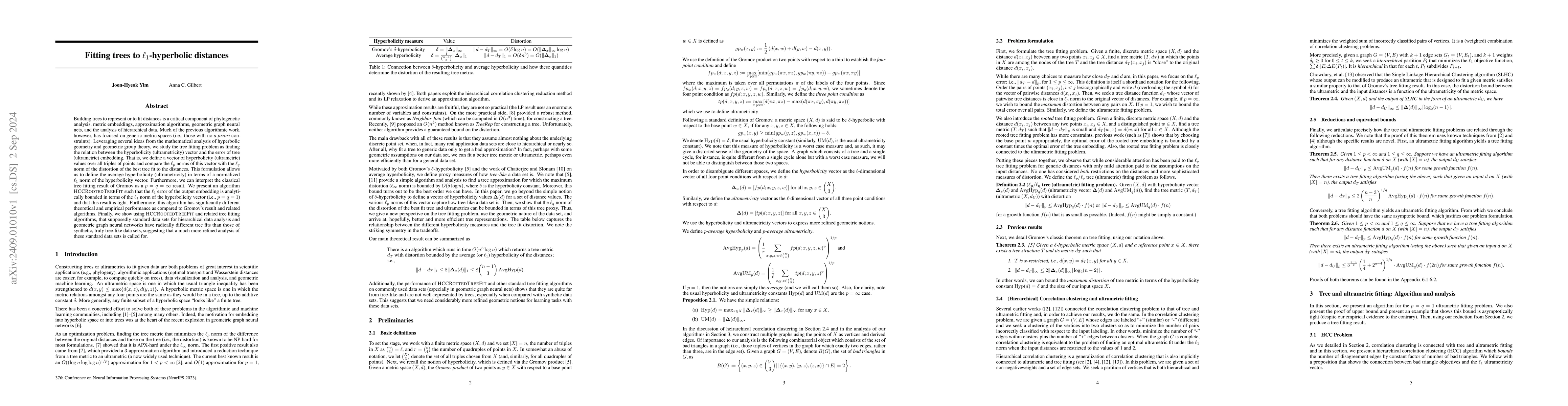 Building trees to represent or to fit distances is a critical component of phylogenetic analysis, metric embeddings, approximation algorithms, geometric graph neural nets, and the analysis of hierarchical data. Much of the previous algorithmic work, however, has focused on generic metric spaces (i.e., those with no a priori constraints). Leveraging several ideas from the mathematical analysis of hyperbolic geometry and geometric group theory, we study the tree fitting problem as finding the relation between the hyperbolicity (ultrametricity) vector and the error of tree (ultrametric) embedding. That is, we define a vector of hyperbolicity (ultrametric) values over all triples of points and compare the $\ell_p$ norms of this vector with the $\ell_q$ norm of the distortion of the best tree fit to the distances. This formulation allows us to define the average hyperbolicity (ultrametricity) in terms of a normalized $\ell_1$ norm of the hyperbolicity vector. Furthermore, we can interpret the classical tree fitting result of Gromov as a $p = q = \infty$ result. We present an algorithm HCCRootedTreeFit such that the $\ell_1$ error of the output embedding is analytically bounded in terms of the $\ell_1$ norm of the hyperbolicity vector (i.e., $p = q = 1$) and that this result is tight. Furthermore, this algorithm has significantly different theoretical and empirical performance as compared to Gromov's result and related algorithms. Finally, we show using HCCRootedTreeFit and related tree fitting algorithms, that supposedly standard data sets for hierarchical data analysis and geometric graph neural networks have radically different tree fits than those of synthetic, truly tree-like data sets, suggesting that a much more refined analysis of these standard data sets is called for.