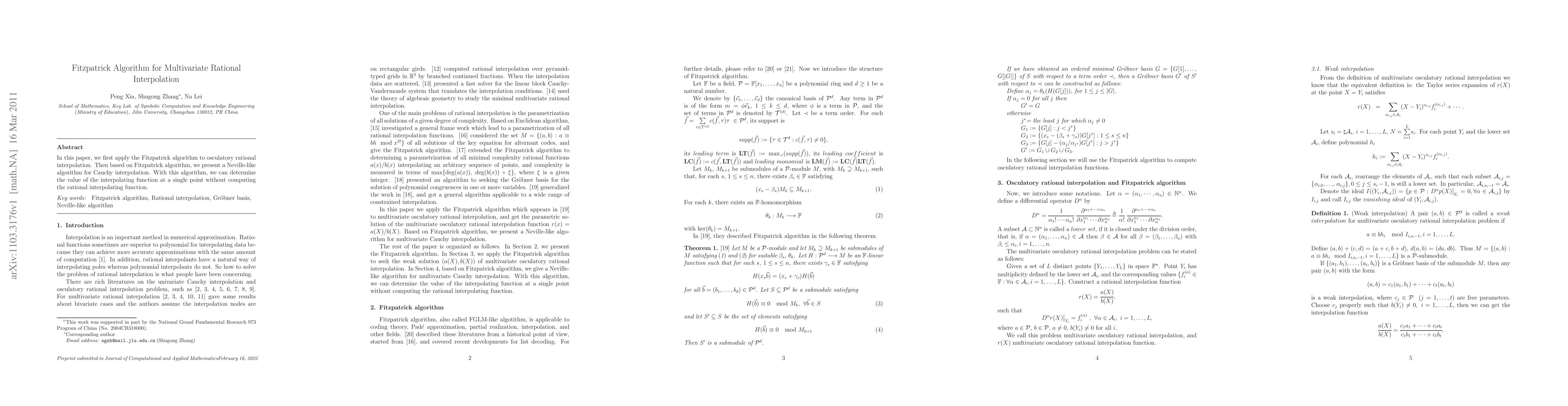 Summary: This paper applies the Fitzpatrick algorithm to osculatory rational interpolation and develops a Neville-like algorithm for Cauchy interpolation, enabling the evaluation of the interpolating function at a single point without computing the entire rational function.