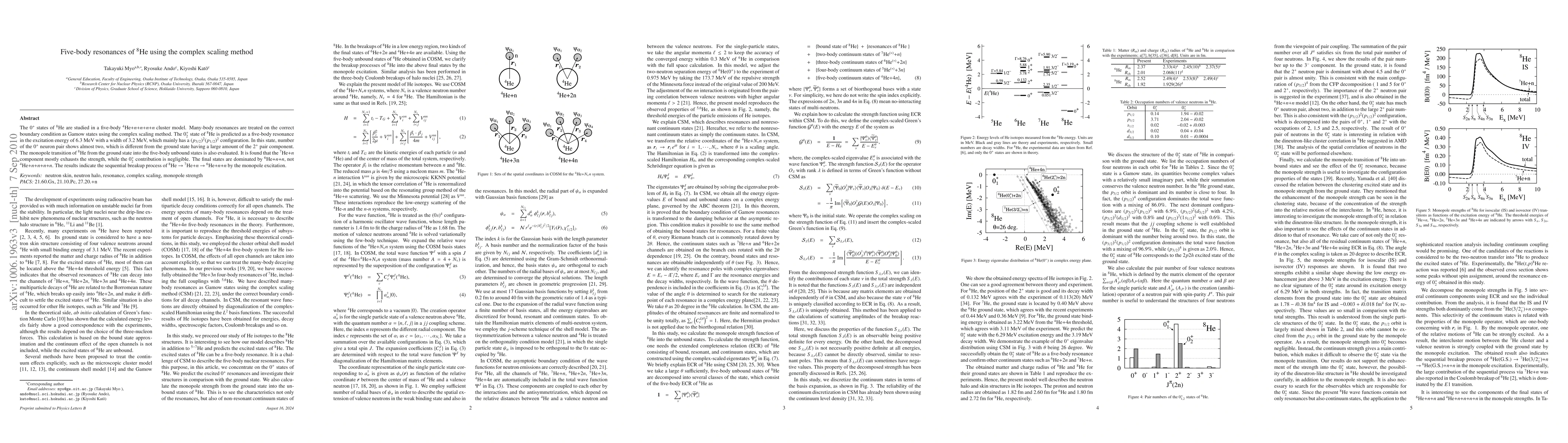This study predicts the 0+_2 state of 8He as a five-body resonance at 6.3 MeV with a 3.2 MeV width, primarily characterized by a (p_{3/2})^2(p_{1/2})^2 configuration. The monopole transition from the ground state to this resonance is dominated by the 7He+n component, indicating a sequential breakup process of 8He to 7He+n and then to 6He+n+n.