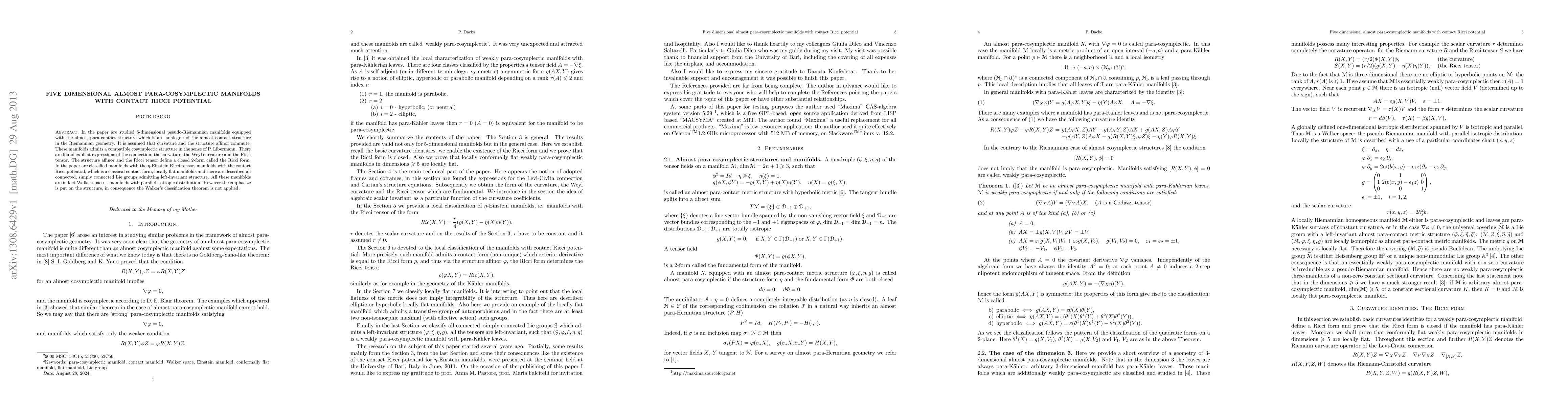 Summary: This paper classifies 5-dimensional pseudo-Riemannian manifolds with an almost para-cosymplectic structure, examining their contact Ricci potential, locally flat forms, and left-invariant structures on connected, simply connected Lie groups, revealing them as Walker spaces.