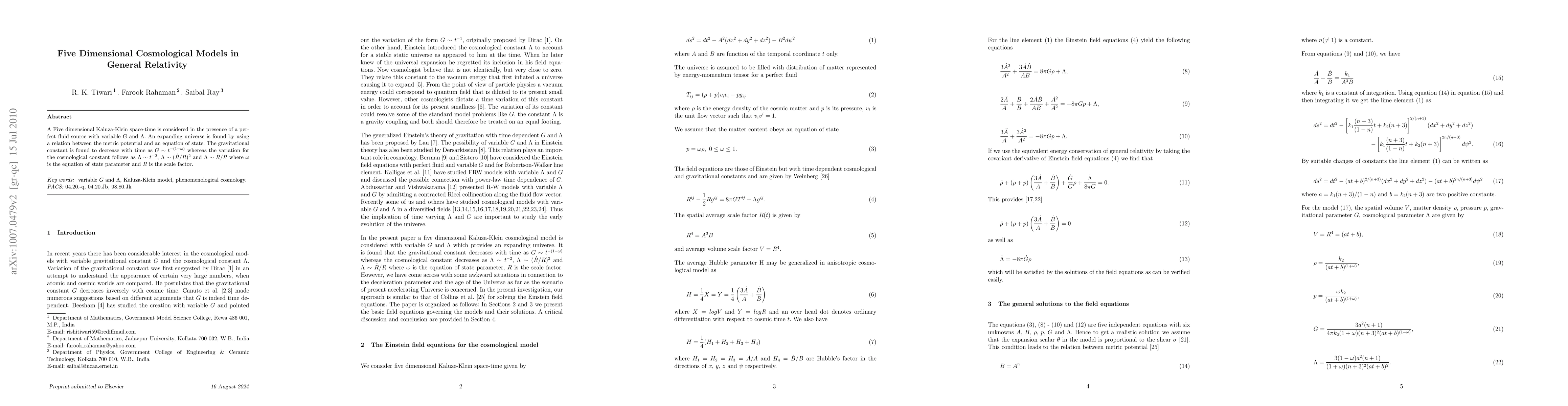A new cosmological model is proposed using Kaluza-Klein theory, showing how a gravitational constant decreases over time and a cosmological constant changes according to the expansion of the universe.