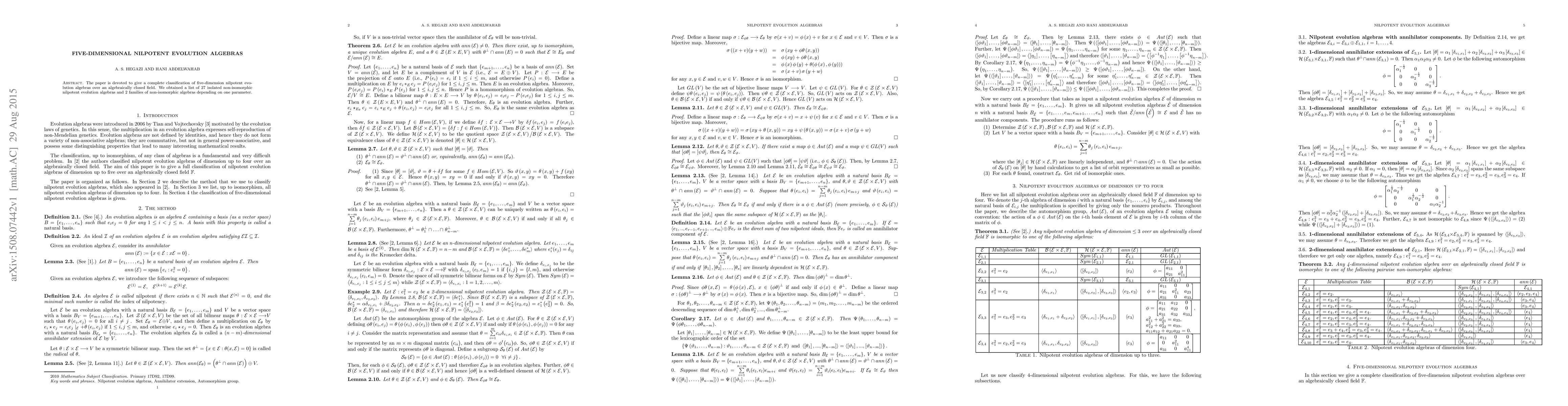 The paper classifies five-dimensional nilpotent evolution algebras over an algebraically closed field, identifying 27 isolated non-isomorphic algebras and 2 families parameterized by one variable. This comprehensive classification provides a detailed understanding of the structure of such algebras.