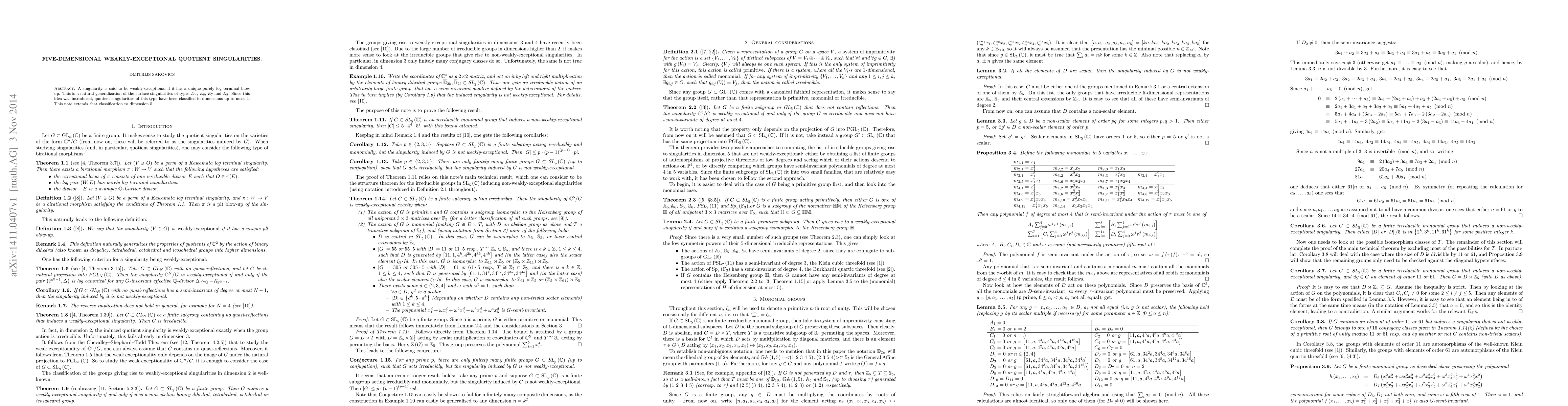 A singularity is said to be weakly-exceptional if it has a unique purely log terminal blow up. This is a natural generalization of the surface singularities of types $D_{n}$, $E_{6}$, $E_{7}$ and $E_{8}$. Since this idea was introduced, quotient singularities of this type have been classified in dimensions up to most $4$. This note extends that classification to dimension $5$.
