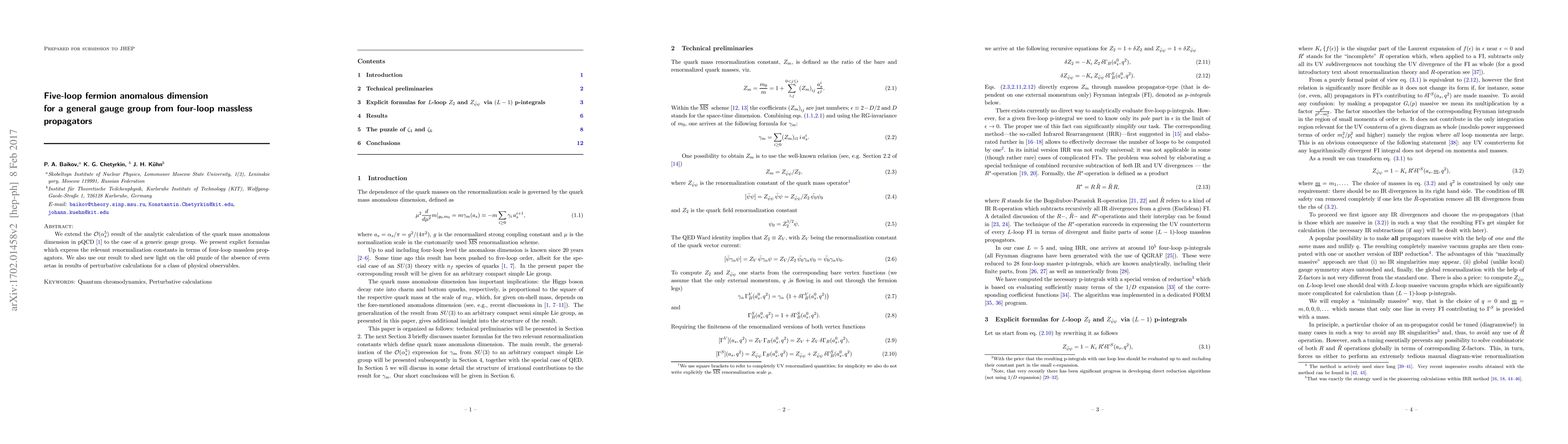 This paper extends the five-loop calculation of the quark mass anomalous dimension in perturbative quantum chromodynamics (pQCD) to a general gauge group, providing explicit formulas based on four-loop massless propagators. It also addresses the longstanding issue of the absence of even zeta values in perturbative calculations for certain physical observables.