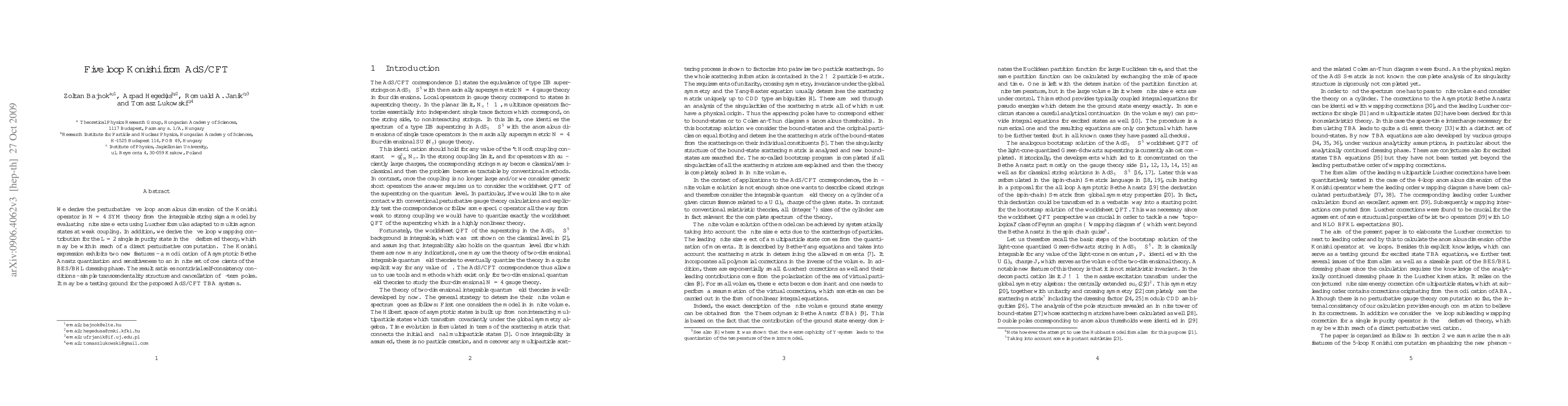 We derive the perturbative five loop anomalous dimension of the Konishi operator in N = 4 SYM theory from the integrable string sigma model by evaluating finite size effects using Luscher formulas adapted to multimagnon states at weak coupling. In addition, we derive the five loop wrapping contribution for the L=2 single impurity state in the beta deformed theory, which may be within reach of a direct perturbative computation. The Konishi expression exhibits two new features - a modification of Asymptotic Bethe Ansatz quantization and sensitiveness to an infinite set of coefficients of the BES/BHL dressing phase. The result satisfies nontrivial self-consistency conditions - simple transcendentality structure and cancellation of mu-term poles. It may be a testing ground for the proposed AdS/CFT TBA systems.