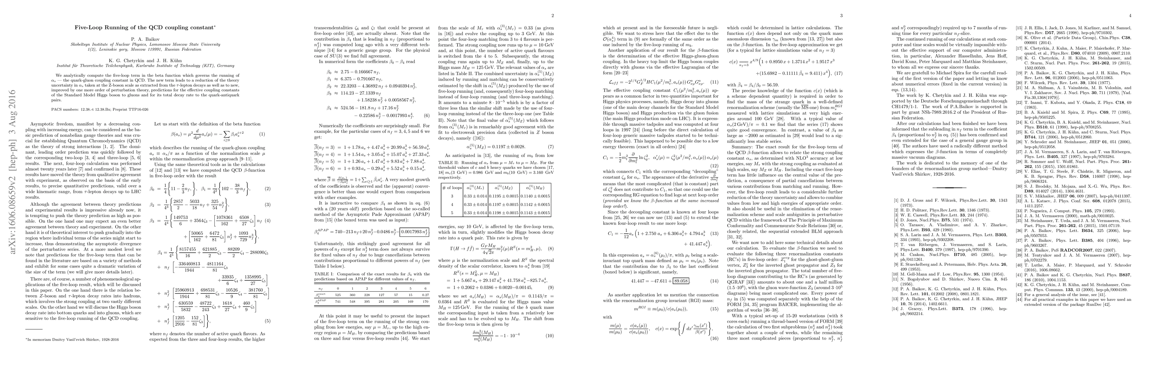 This paper computes the five-loop term in the QCD beta function, refining the running of the quark-gluon coupling constant $\alpha_s$. The new term reduces theory uncertainty in $\alpha_s$ and enhances predictions for the Standard Model Higgs boson's coupling to gluons and its decay rate to quark-antiquark pairs.