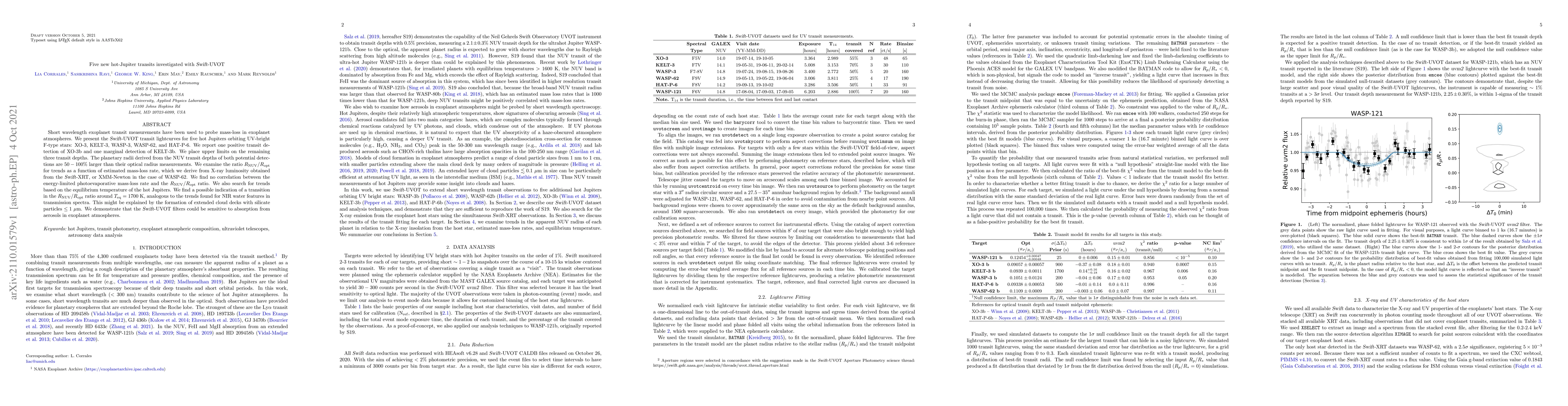 This study investigates five hot Jupiters using Swift-UVOT transit light curves to measure mass-loss in their atmospheres. The findings suggest that the planetary radii in the ultraviolet are significantly larger than in optical measurements, indicating potential aerosol or cloud formation. No correlation is found between mass-loss rate and UV-to-optical radius ratio, but a possible transition in the ratio around 1700 K suggests the formation of silicate aerosols.