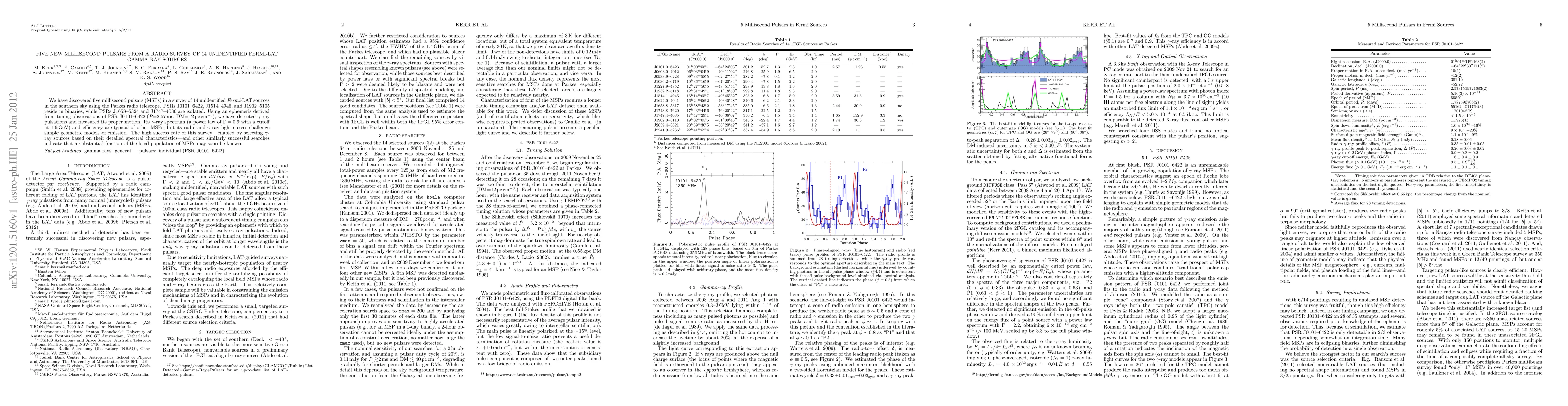 This paper reports the discovery of five new millisecond pulsars (MSPs) from a radio survey targeting 14 unidentified Fermi-LAT gamma-ray sources in the southern sky. The findings suggest that a significant portion of the local MSP population may soon be identified.
