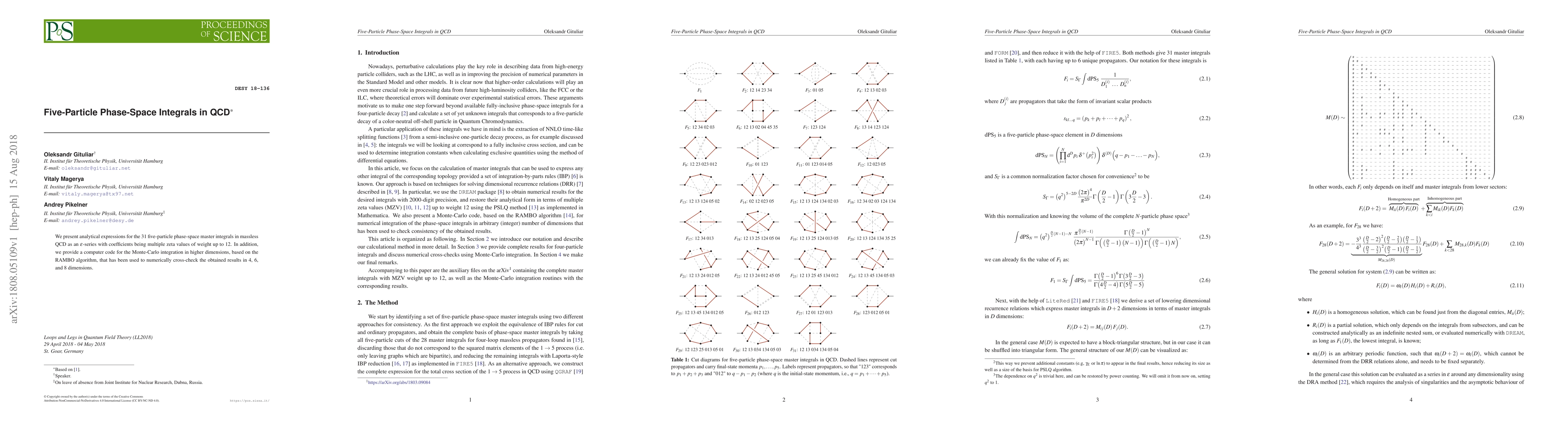 We present analytical expressions for the 31 five-particle phase-space master integrals in massless QCD as an $\epsilon$-series with coefficients being multiple zeta values of weight up to 12. In addition, we provide a computer code for the Monte-Carlo integration in higher dimensions, based on the RAMBO algorithm, that has been used to numerically cross-check the obtained results in 4, 6, and 8 dimensions.