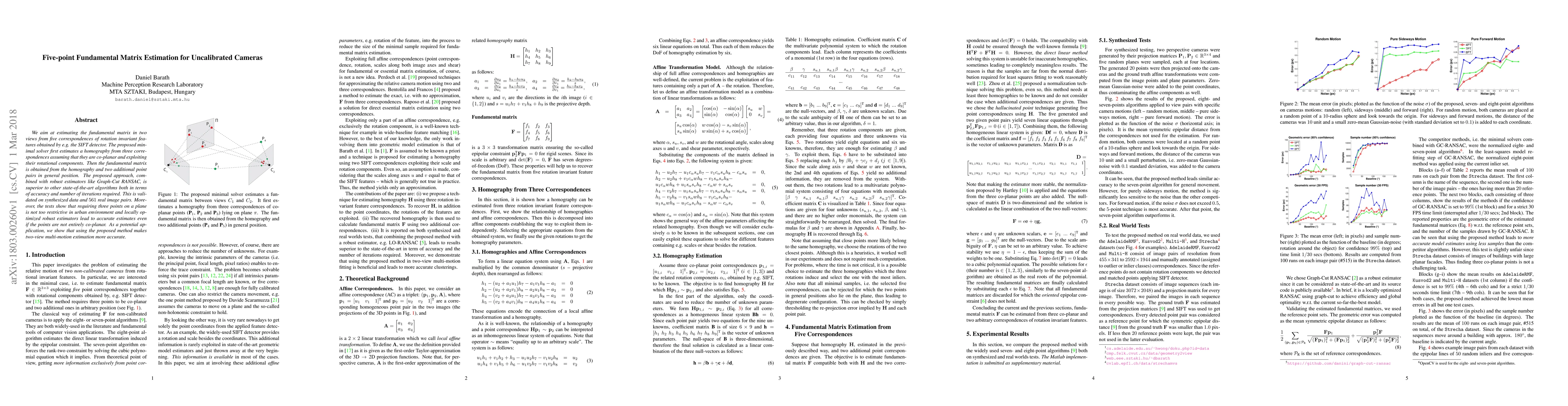 This paper proposes a minimal solver for estimating the fundamental matrix from five feature correspondences in uncalibrated cameras, leveraging homography estimation from three co-planar points. The method is shown to outperform other algorithms in accuracy and efficiency, validated on both synthetic and real image data.