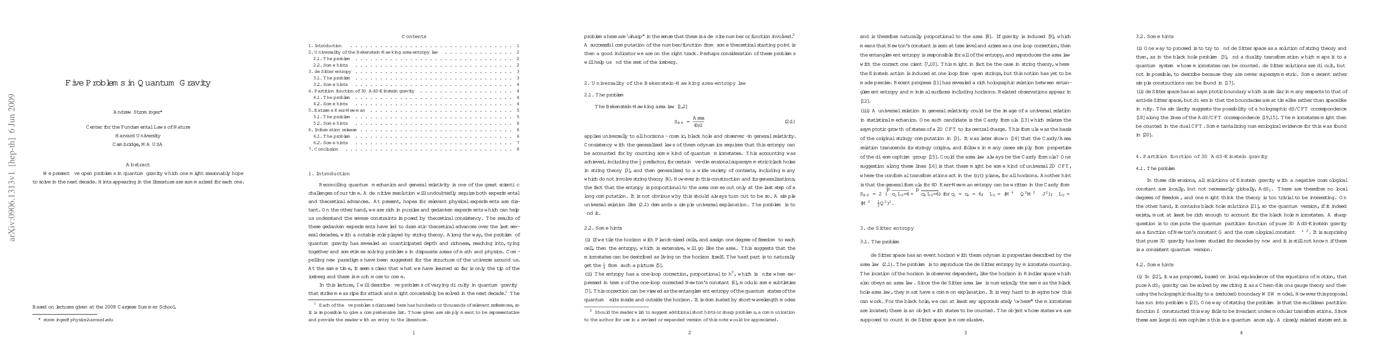 This paper identifies five significant unsolved problems in quantum gravity, suggesting potential avenues for research in the coming decade, and summarizes existing clues from the literature that may help address these challenges.