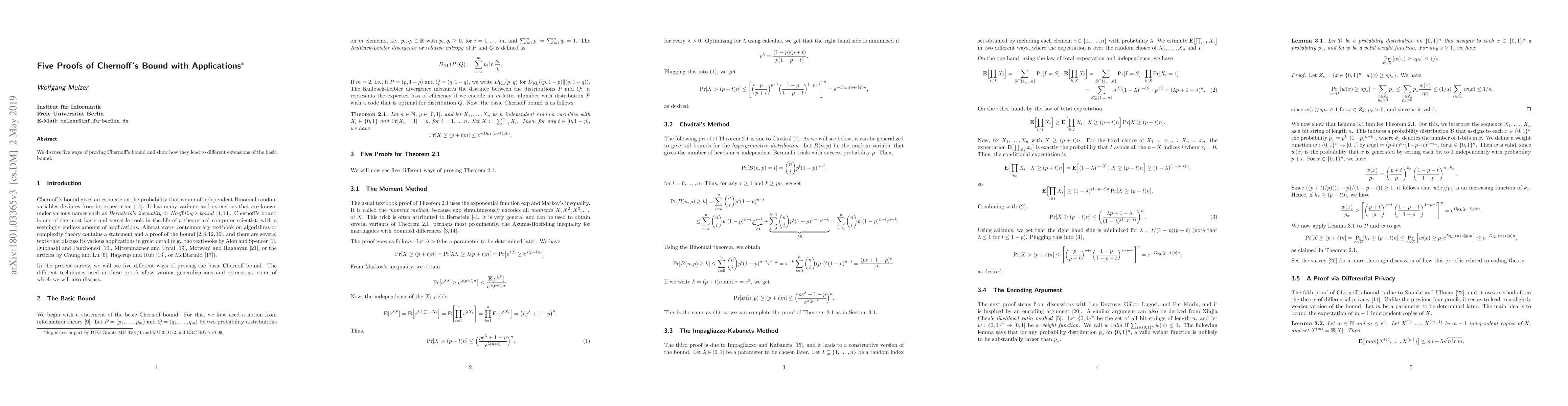 We discuss five ways of proving Chernoff's bound and show how they lead to different extensions of the basic bound.