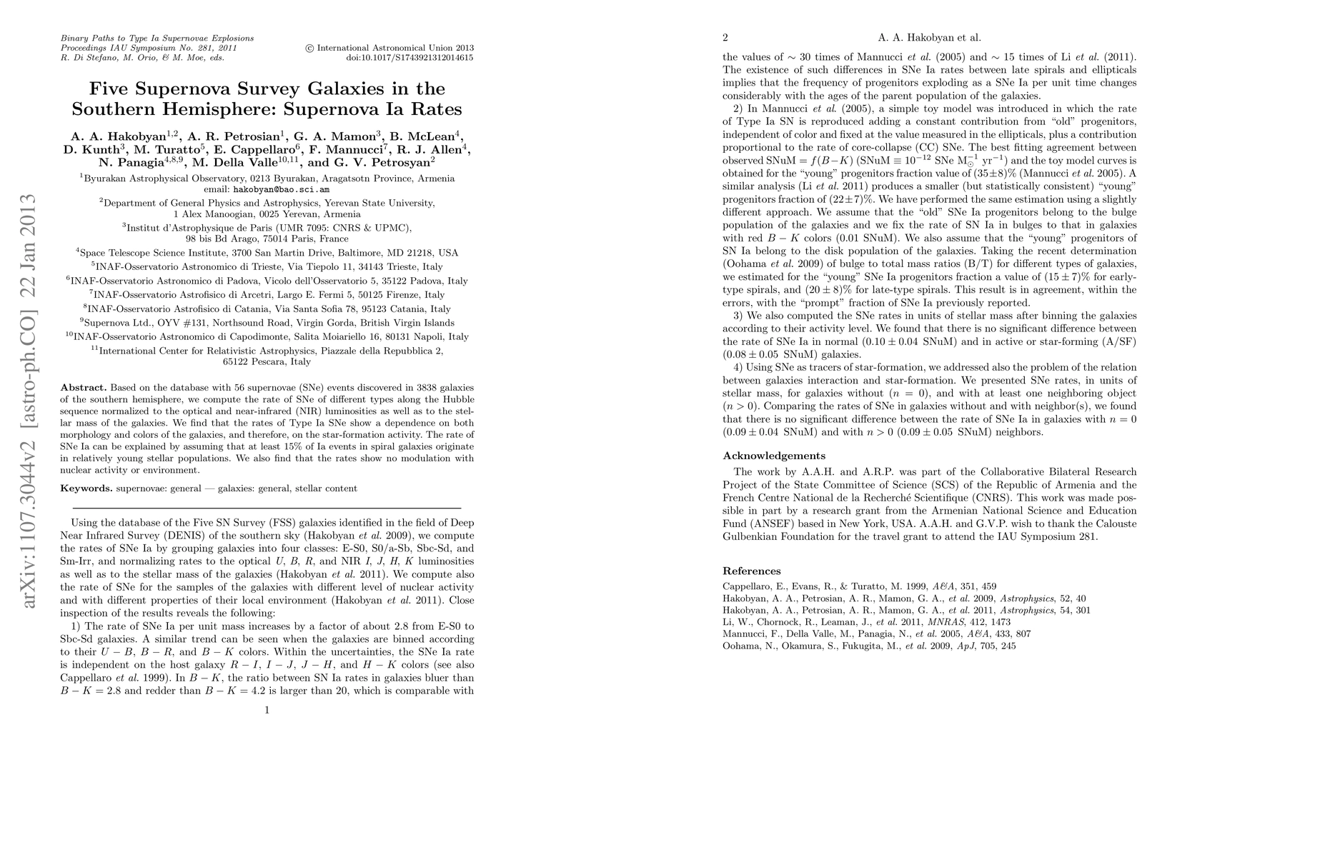 Based on the database of 56 supernovae (SNe) events discovered in 3838 galaxies of the southern hemisphere, we compute the rate of SNe of different types along the Hubble sequence normalized to the optical and near-infrared (NIR) luminosities as well as to the stellar mass of the galaxies. We find that the rates of Type Ia SNe show a dependence on both morphology and colors of the galaxies, and therefore, on the star-formation activity. The rate of SNe Ia can be explained by assuming that at least 15% of Ia events in spiral galaxies originate in relatively young stellar populations. We also find that the rates show no modulation with nuclear activity or environment.