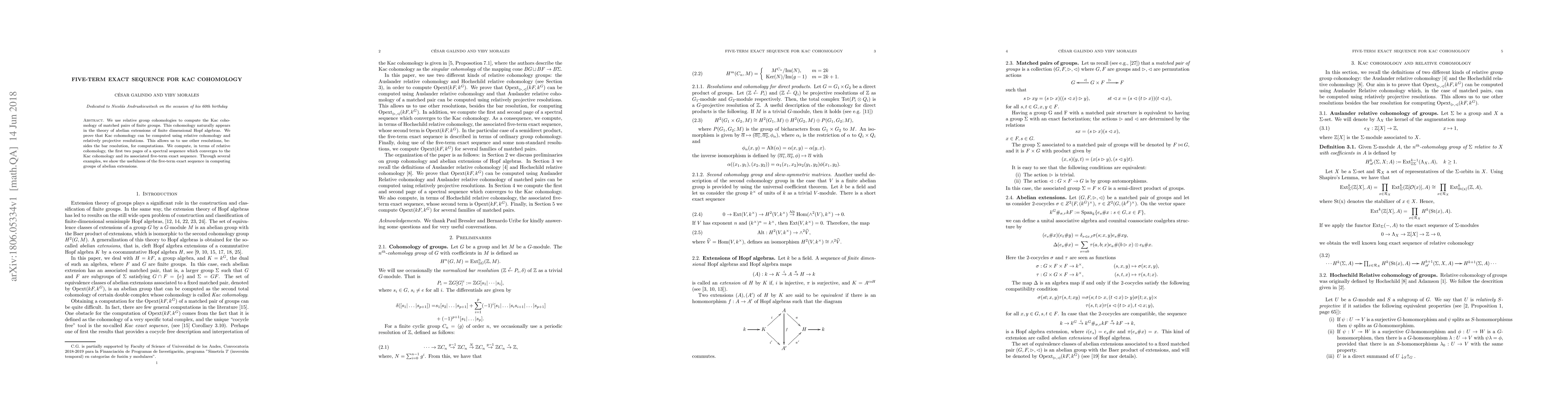 This paper computes the Kac cohomology of matched pairs of finite groups using relative group cohomologies and establishes a five-term exact sequence. It demonstrates the utility of this sequence in determining abelian extensions of finite-dimensional Hopf algebras through examples.