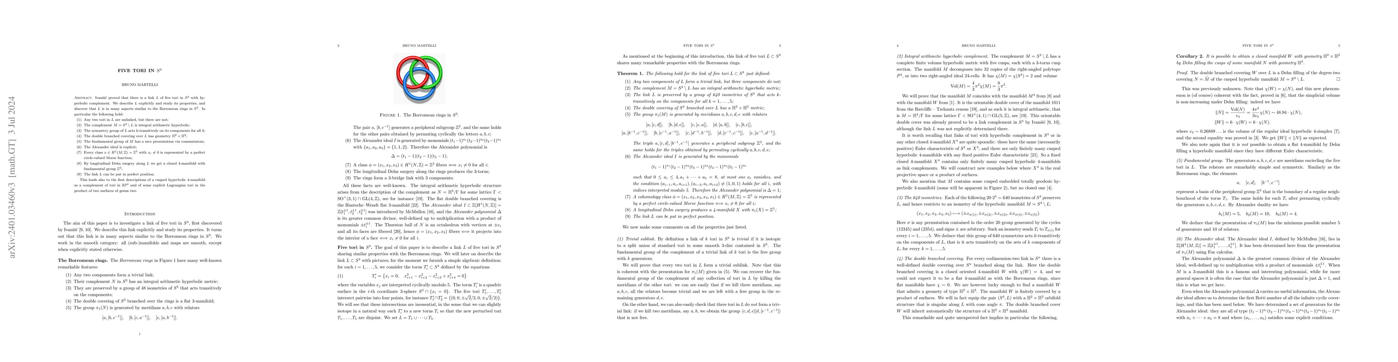 This paper describes a unique link $L$ of five tori in $S^4$ with a hyperbolic complement, revealing properties similar to the Borromean rings in $S^3$ and detailing its symmetries, geometric coverings, and implications for the fundamental group and Betti numbers. It also explores the link's role in constructing closed 4-manifolds and cusped hyperbolic 4-manifolds.