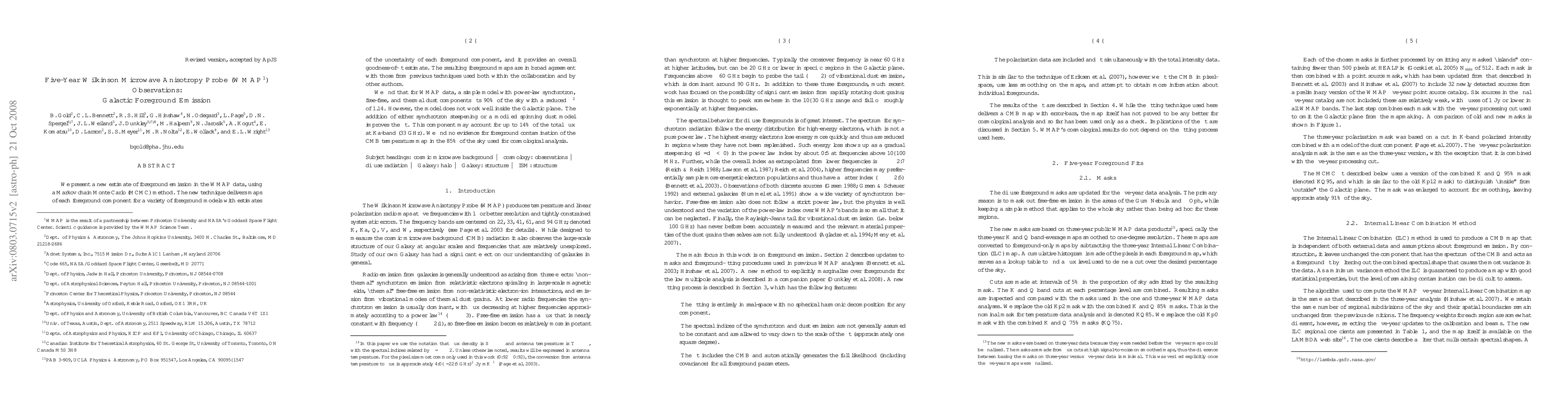 This paper presents a refined estimation of foreground emission in WMAP data using an MCMC method, yielding improved foreground maps and error estimates. A simple model with power-law synchrotron, free-free, and thermal dust components fits most of the sky, though additional models improve fits near the Galactic plane.