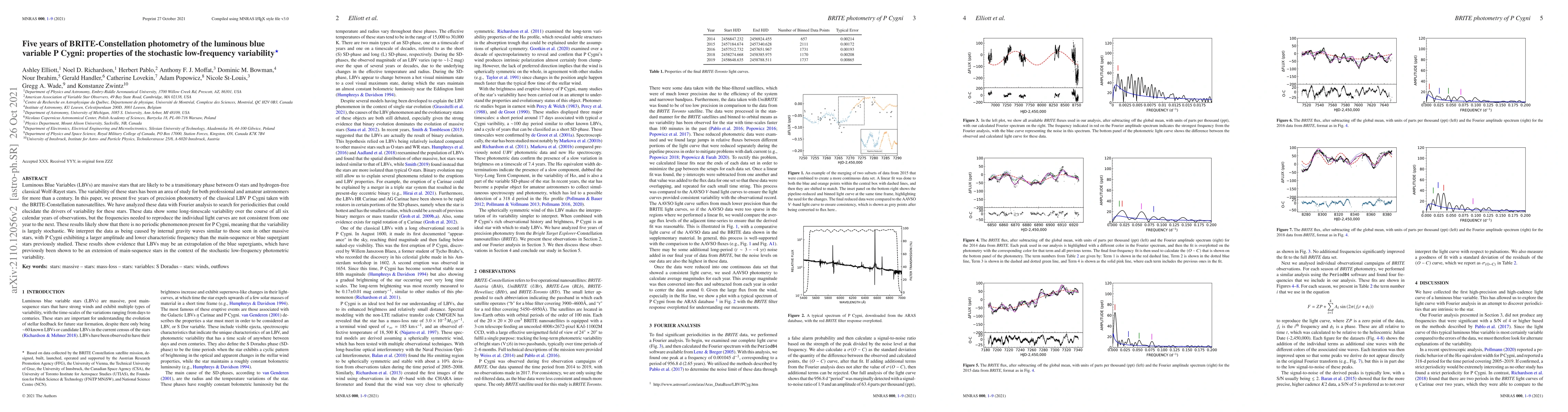 This study presents five years of BRITE-Constellation photometry of the luminous blue variable P Cygni, revealing stochastic low-frequency variability likely driven by internal gravity waves. The analysis shows no consistent periodicities, indicating that the variability is largely non-periodic and suggests LBVs may extend the variability patterns seen in blue supergiants.