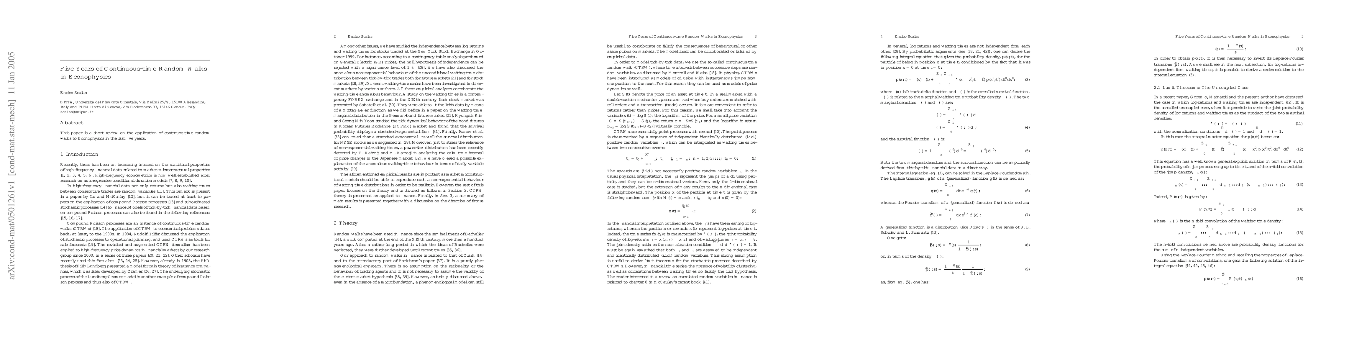 This paper is a short review on the application of continuos-time random walks to Econophysics in the last five years.