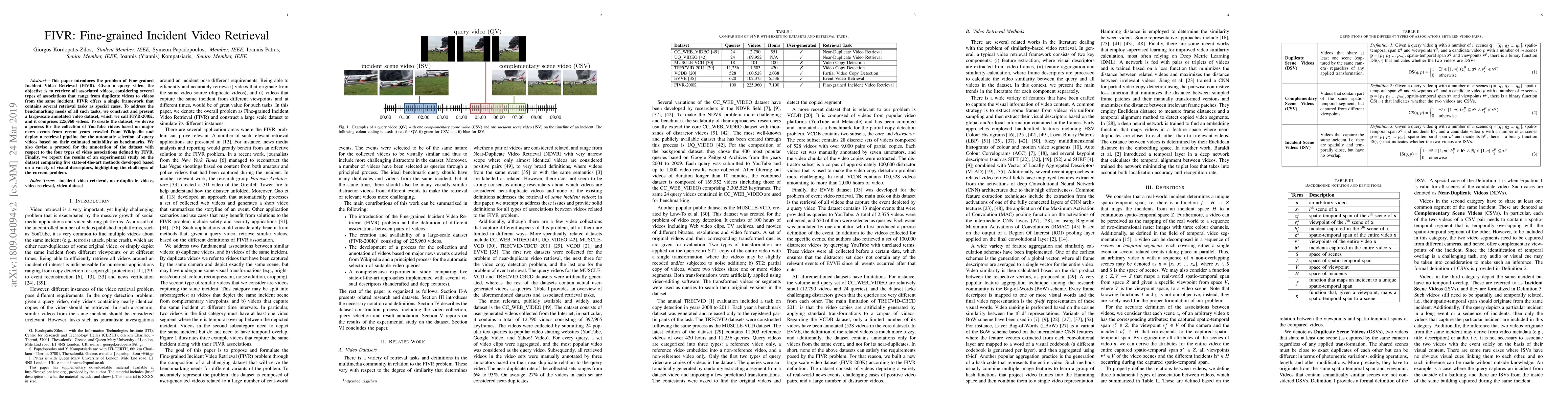 This research introduces FIVR, a framework for retrieving videos related to the same incident, and presents a large dataset to benchmark different retrieval methods. The study highlights the challenges in accurately matching videos of varying similarity types from real-world news events.