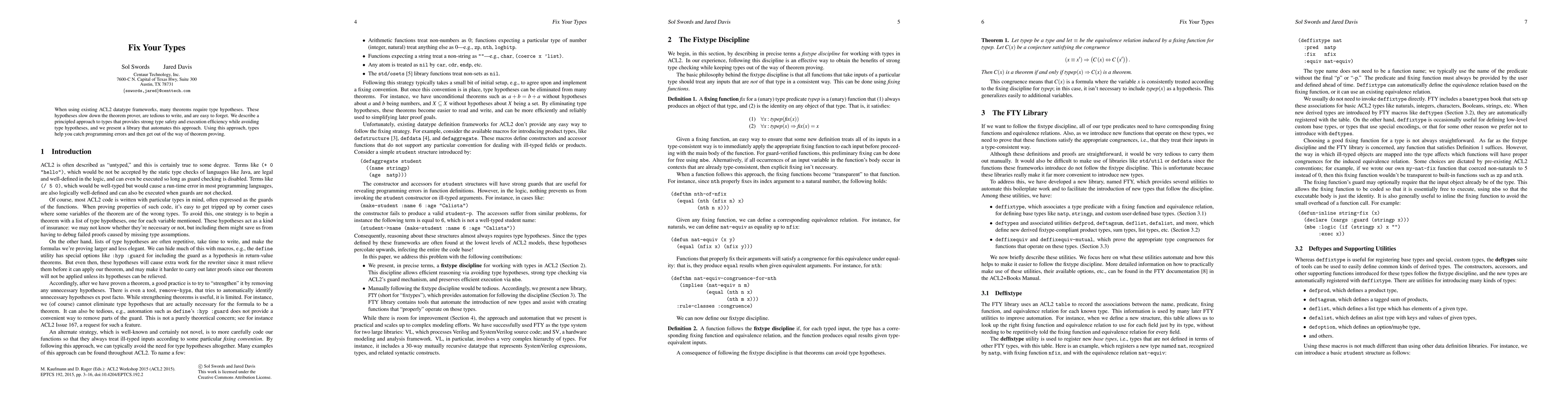 When using existing ACL2 datatype frameworks, many theorems require type hypotheses. These hypotheses slow down the theorem prover, are tedious to write, and are easy to forget. We describe a principled approach to types that provides strong type safety and execution efficiency while avoiding type hypotheses, and we present a library that automates this approach. Using this approach, types help you catch programming errors and then get out of the way of theorem proving.