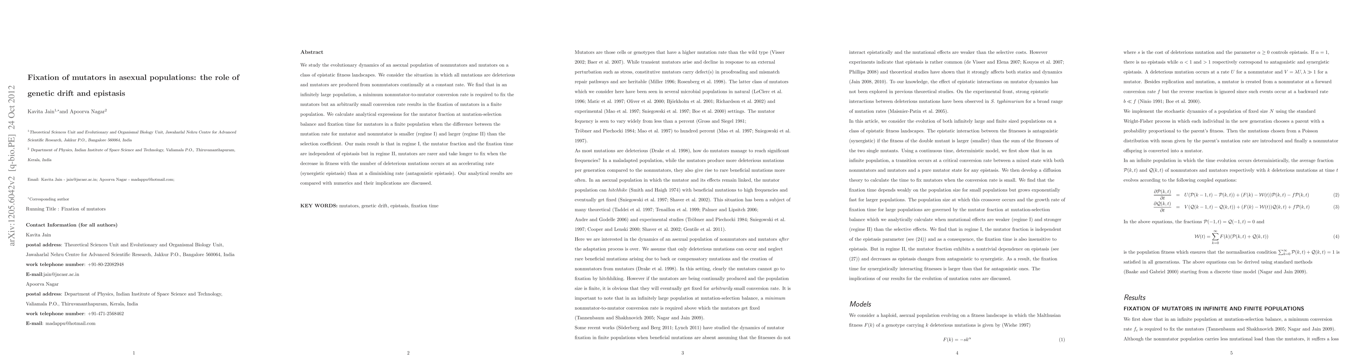 This paper investigates the evolutionary dynamics of mutators in asexual populations, finding that mutators fix in finite populations regardless of conversion rate but require a minimum conversion rate in infinite populations. It reveals that in regime I, mutator fixation is unaffected by epistasis, while in regime II, synergistic epistasis slows mutator fixation compared to antagonistic epistasis.