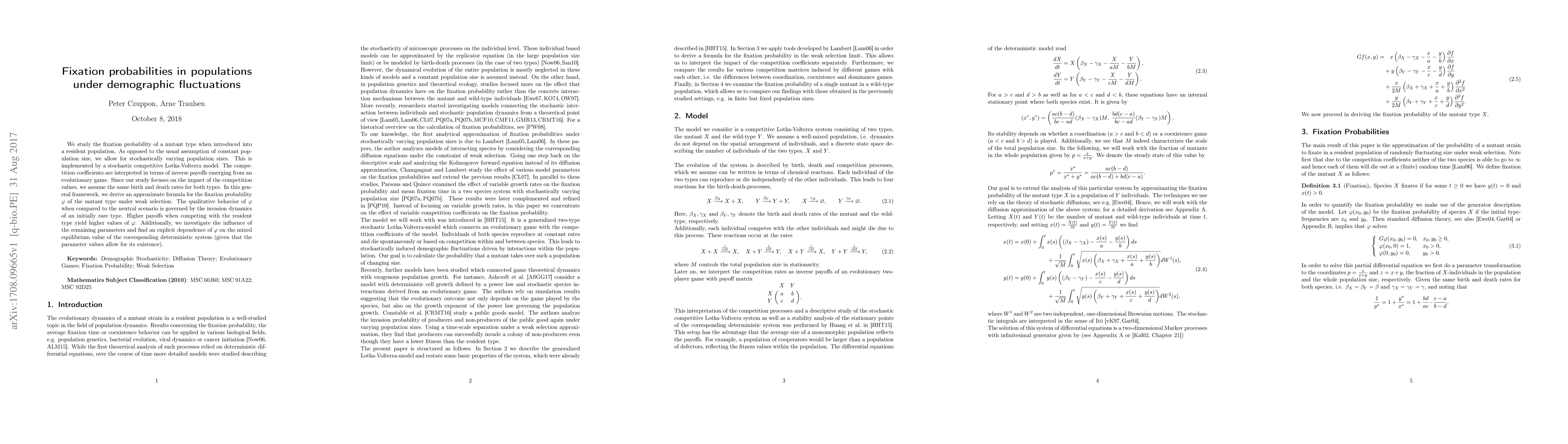 We study the fixation probability of a mutant type when introduced into a resident population. As opposed to the usual assumption of constant pop- ulation size, we allow for stochastically varying population sizes. This is implemented by a stochastic competitive Lotka-Volterra model. The compe- tition coefficients are interpreted in terms of inverse payoffs emerging from an evolutionary game. Since our study focuses on the impact of the competition values, we assume the same birth and death rates for both types. In this gen- eral framework, we derive an approximate formula for the fixation probability {\phi} of the mutant type under weak selection. The qualitative behavior of {\phi} when compared to the neutral scenario is governed by the invasion dynamics of an initially rare type. Higher payoffs when competing with the resident type yield higher values of {\phi}. Additionally, we investigate the influence of the remaining parameters and find an explicit dependence of {\phi} on the mixed equilibrium value of the corresponding deterministic system (given that the parameter values allow for its existence).