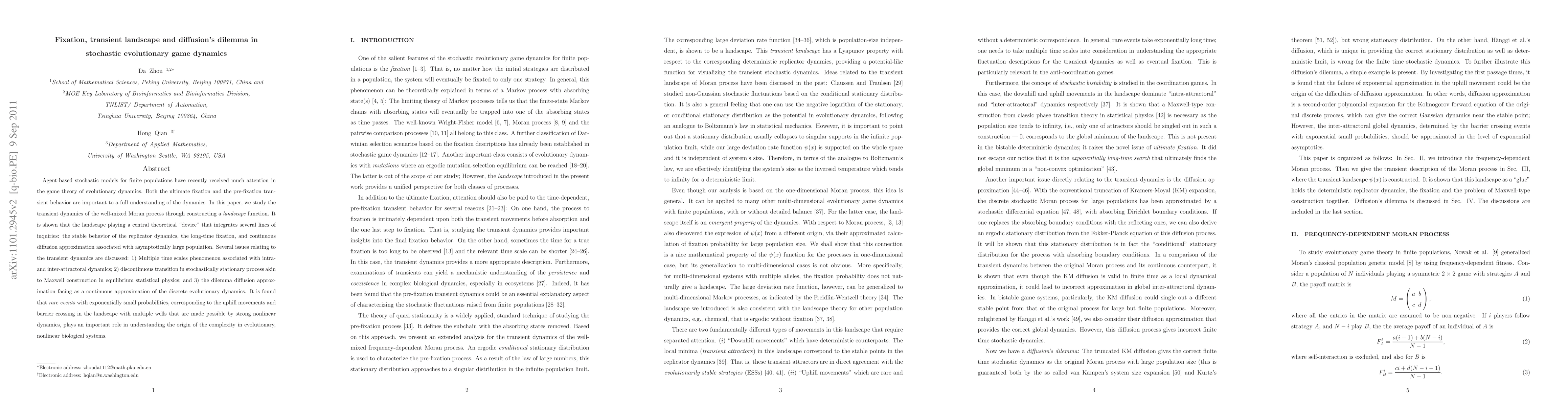 This paper investigates the transient dynamics of the Moran process in stochastic evolutionary game theory, using a landscape function to integrate various aspects of fixation behavior, attractor dynamics, and diffusion approximation. It highlights the significance of rare, high-probability events in shaping the complex dynamics of evolutionary systems.