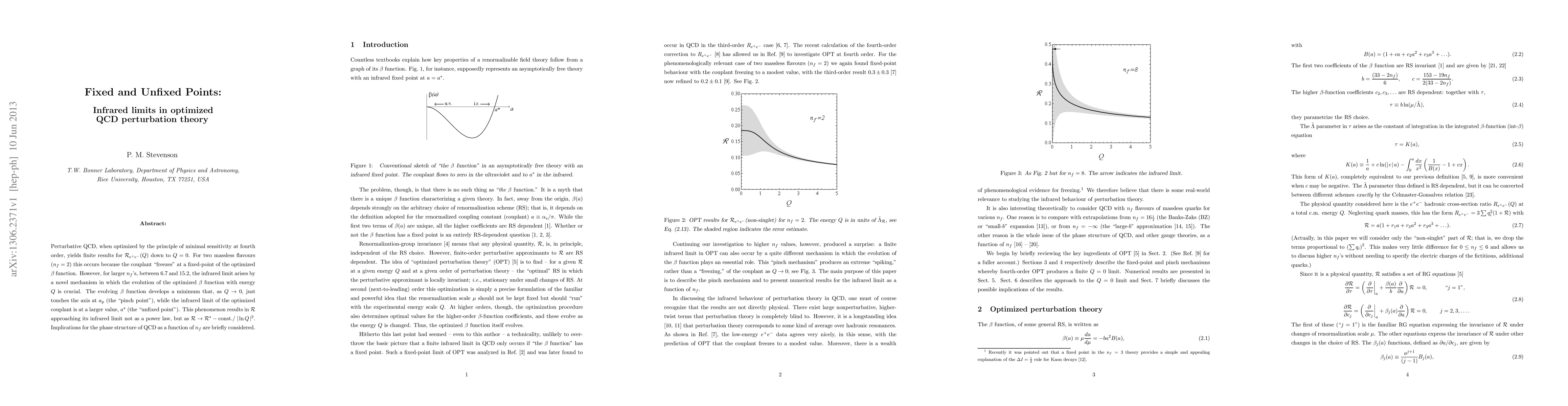 Perturbative QCD, when optimized by the principle of minimal sensitivity at fourth order, yields finite results for R(e+e-)(Q) down to Q=0. For two massless flavours (n_f=2) this occurs because the couplant "freezes" at a fixed point of the optimized beta function. However, for larger n_f's, between 6.7 and 15.2, the infrared limit arises by a novel mechanism in which the evolution of the optimized beta function with energy Q is crucial. The evolving beta function develops a minimum that, as Q -> 0, just touches the axis at a_p (the "pinch point"), while the infrared limit of the optimized couplant is at a larger value, a^star (the "unfixed point"). This phenomenon results in R approaching its infrared limit not as a power law, but as R -> R^star-const./|ln Q|^2. Implications for the phase structure of QCD as a function of n_f are briefly considered.