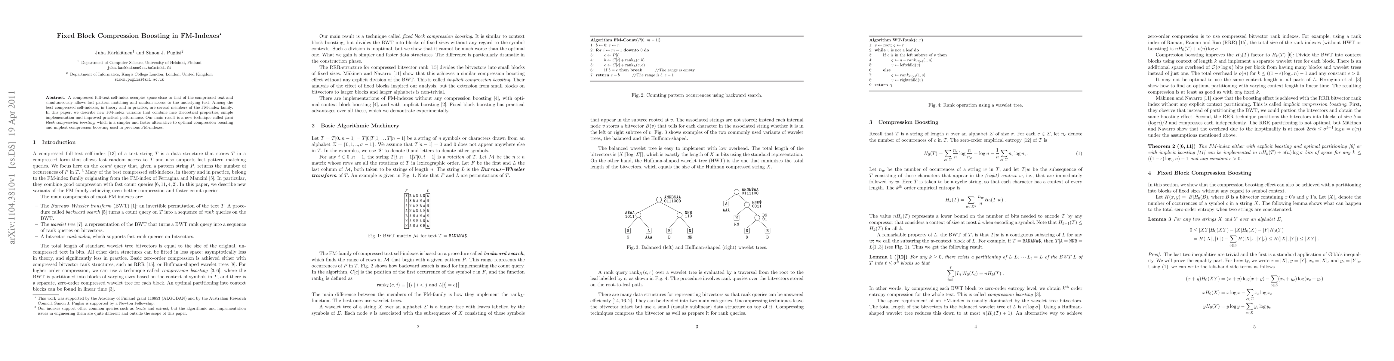 A compressed full-text self-index occupies space close to that of the compressed text and simultaneously allows fast pattern matching and random access to the underlying text. Among the best compressed self-indexes, in theory and in practice, are several members of the FM-index family. In this paper, we describe new FM-index variants that combine nice theoretical properties, simple implementation and improved practical performance. Our main result is a new technique called fixed block compression boosting, which is a simpler and faster alternative to optimal compression boosting and implicit compression boosting used in previous FM-indexes.