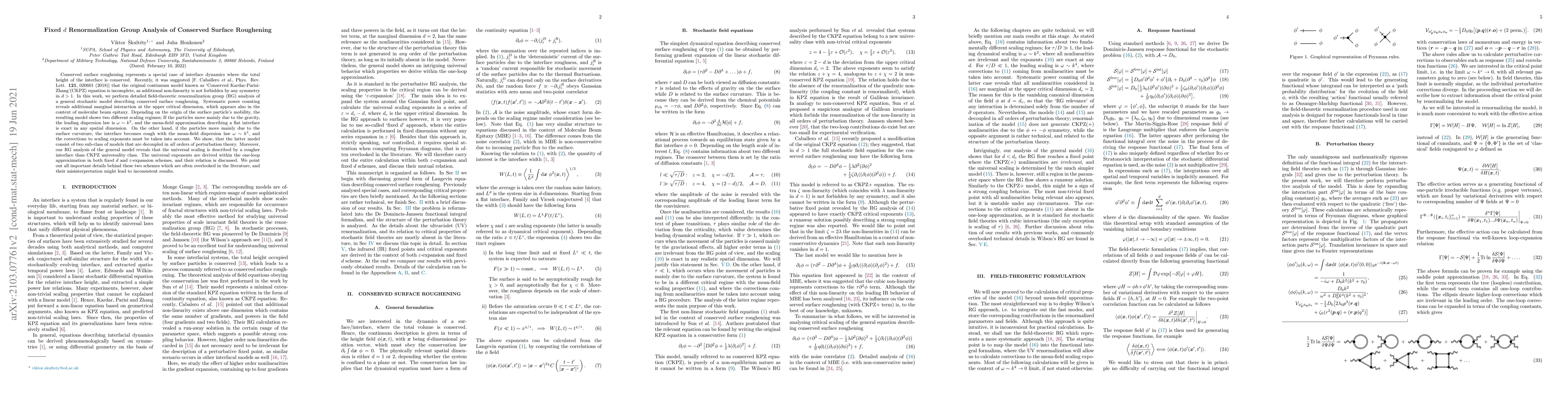 Conserved surface roughening represents a special case of interface dynamics where the total height of the interface is conserved. Recently, it was suggested [F. Caballero et al., Phys. Rev. Lett. 121, 020601 (2018)] that the original continuum model known as `Conserved Kardar-Parisi-Zhang'(CKPZ) equation is incomplete, as additional non-linearity is not forbidden by any symmetry in $d > 1$. In this work, we perform detailed field-theoretic renormalization group (RG) analysis of a general stochastic model describing conserved surface roughening. Systematic power counting reveals additional marginal interaction at the upper critical dimension, which appears also in the context of molecular beam epitaxy. Depending on the origin of the surface particle's mobility, the resulting model shows two different scaling regimes; If the particles move mainly due to the gravity, the leading dispersion law is $\omega \sim k^2$, and the mean-field approximation describing a flat interface is exact in any spatial dimension. On the other hand, if the particles move mainly due to the surface curvature, the interface becomes rough with the mean-field dispersion law $\omega \sim k^4$ , and the corrections to scaling exponents must be taken into account. We show, that the latter model consist of two sub-class of models that are decoupled in all orders of perturbation theory. Moreover, our RG analysis of the general model reveals that the universal scaling is described by a rougher interface than CKPZ universality class. The universal exponents are derived within the one-loop approximation in both fixed $d$ and $\varepsilon$-expansion schemes, and their relation is discussed. We point out all important details behind these two schemes which are often overlooked in the literature, and their misinterpretation might lead to inconsistent results.