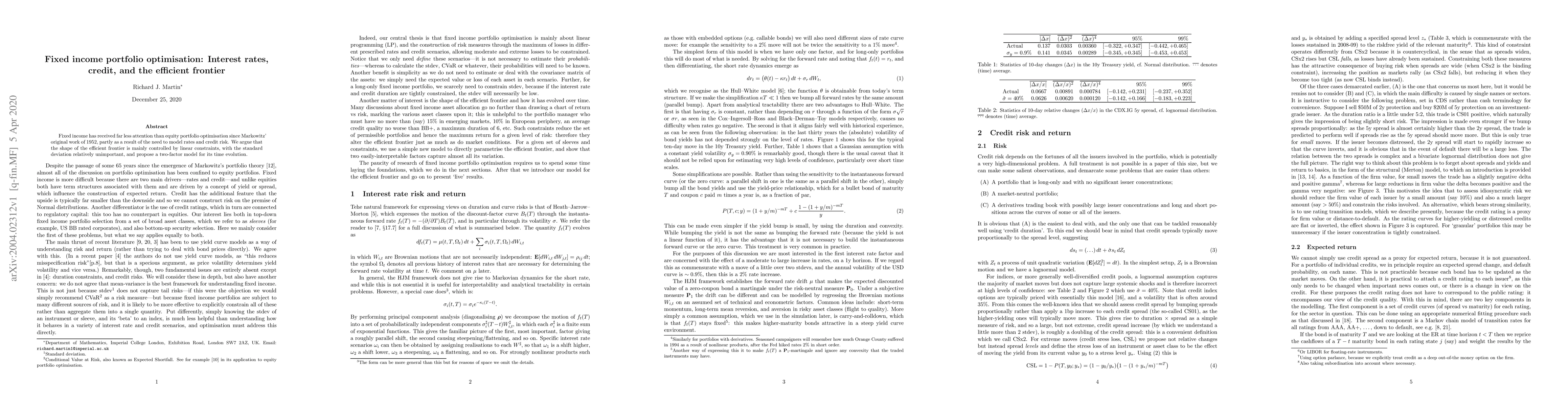 Fixed income has received far less attention than equity portfolio optimisation since Markowitz' original work of 1952, partly as a result of the need to model rates and credit risk. We argue that the shape of the efficient frontier is mainly controlled by linear constraints, with the standard deviation relatively unimportant, and propose a two-factor model for its time evolution.