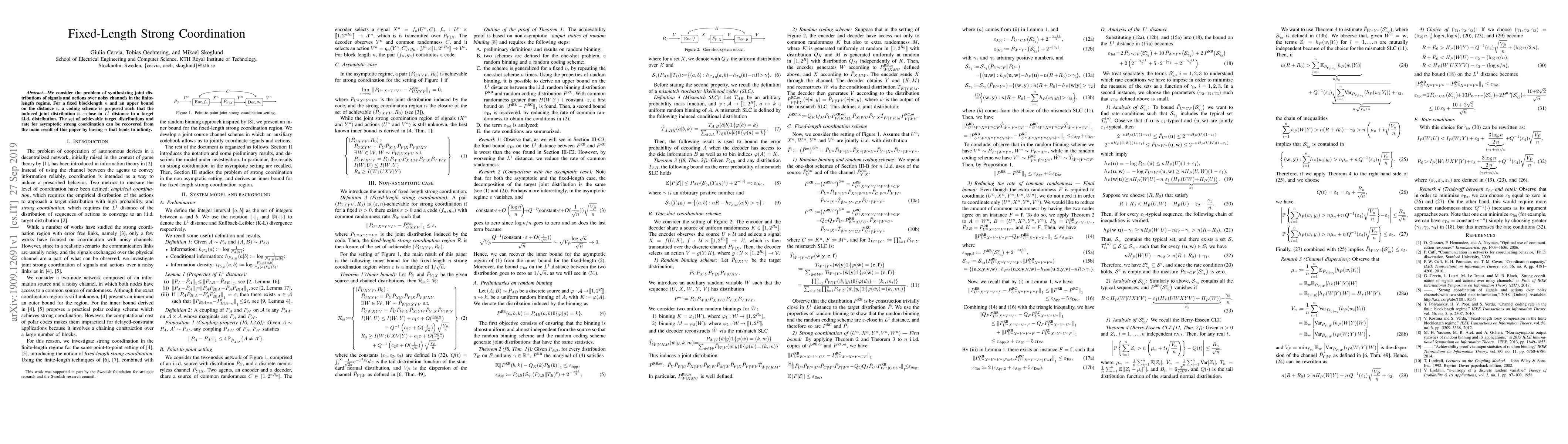 We consider the problem of synthesizing joint distributions of signals and actions over noisy channels in the finite-length regime. For a fixed blocklength $n$ and an upper bound on the distance $\varepsilon$, a coding scheme is proposed such that the induced joint distribution is $\varepsilon$-close in $L^1$ distance to a target i.i.d. distribution. The set of achievable target distributions and rate for asymptotic strong coordination can be recovered from the main result of this paper by having $n$ that tends to infinity.
