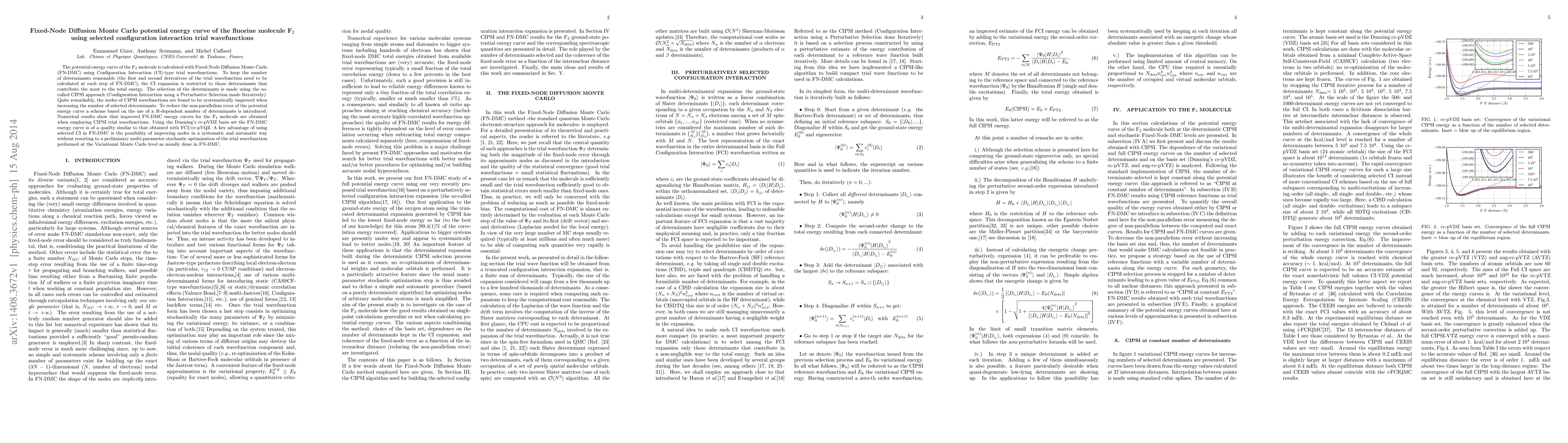 This paper presents a Fixed-Node Diffusion Monte Carlo (FN-DMC) calculation of the F$_2$ molecule's potential energy curve using selected Configuration Interaction (CI) trial wavefunctions. The CIPSI approach is employed to systematically improve the nodes of the CI wavefunctions, leading to high-quality FN-DMC energy curves comparable to those obtained with Full Configuration Interaction (FCI).