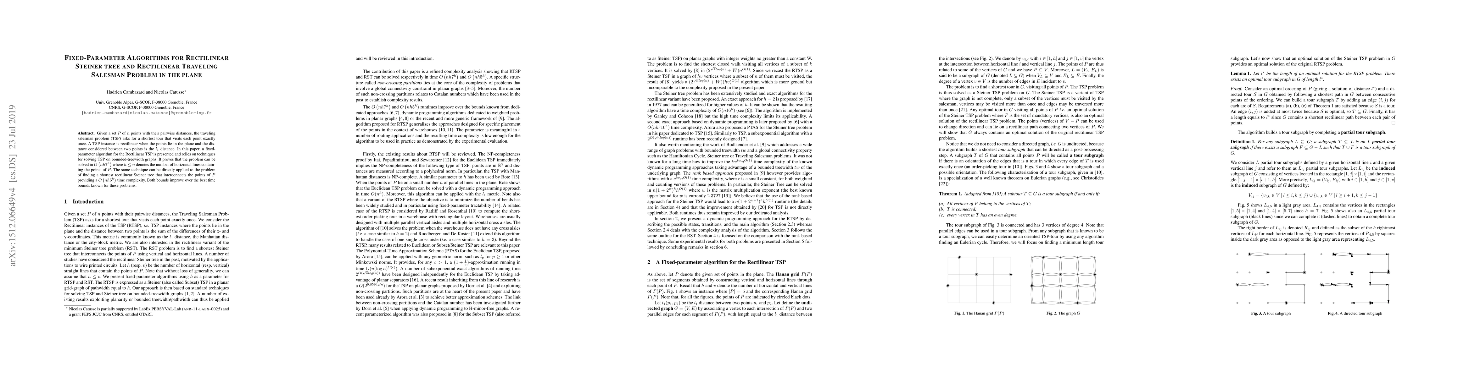 Given a set $P$ of $n$ points with their pairwise distances, the traveling salesman problem (TSP) asks for a shortest tour that visits each point exactly once. A TSP instance is rectilinear when the points lie in the plane and the distance considered between two points is the $l_1$ distance. In this paper, a fixed-parameter algorithm for the Rectilinear TSP is presented and relies on techniques for solving TSP on bounded-treewidth graphs. It proves that the problem can be solved in $O\left(nh7^h\right)$ where $h \leq n$ denotes the number of horizontal lines containing the points of $P$. The same technique can be directly applied to the problem of finding a shortest rectilinear Steiner tree that interconnects the points of $P$ providing a $O\left(nh5^h\right)$ time complexity. Both bounds improve over the best time bounds known for these problems.