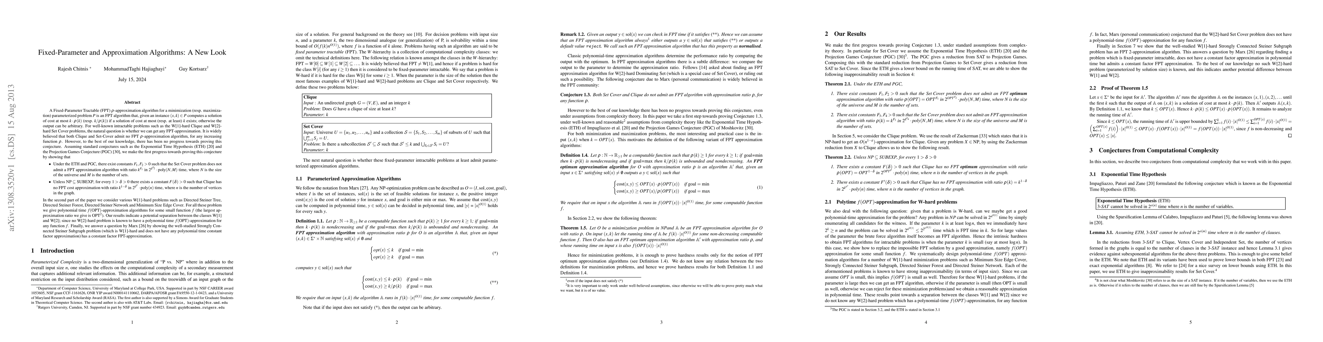 A Fixed-Parameter Tractable (\FPT) $\rho$-approximation algorithm for a minimization (resp. maximization) parameterized problem $P$ is an FPT algorithm that, given an instance $(x, k)\in P$ computes a solution of cost at most $k \cdot \rho(k)$ (resp. $k/\rho(k)$) if a solution of cost at most (resp. at least) $k$ exists; otherwise the output can be arbitrary. For well-known intractable problems such as the W[1]-hard {Clique} and W[2]-hard {Set Cover} problems, the natural question is whether we can get any \FPT-approximation. It is widely believed that both {Clique} and {Set-Cover} admit no FPT $\rho$-approximation algorithm, for any increasing function $\rho$. Assuming standard conjectures such as the Exponential Time Hypothesis (ETH) \cite{eth-paturi} and the Projection Games Conjecture (PGC) \cite{r3}, we make the first progress towards proving this conjecture by showing that 1. Under the ETH and PGC, there exist constants $F_1, F_2 >0$ such that the {Set Cover} problem does not admit an FPT approximation algorithm with ratio $k^{F_1}$ in $2^{k^{F_2}}\cdot \text{poly}(N,M)$ time, where $N$ is the size of the universe and $M$ is the number of sets. 2. Unless $\NP\subseteq \SUBEXP$, for every $1> \delta > 0$ there exists a constant $F(\delta)>0$ such that {Clique} has no FPT cost approximation with ratio $k^{1-\delta}$ in $2^{k^{F}}\cdot \text{poly}(n)$ time, where $n$ is the number of vertices in the graph. In the second part of the paper we consider various W[1]-hard problems such as {\dst}, {\dsf}, Directed Steiner Network and {\mec}. For all these problem we give polynomial time $f(\text{OPT})$-approximation algorithms for some small function $f$ (the largest approximation ratio we give is $\text{OPT}^2$).