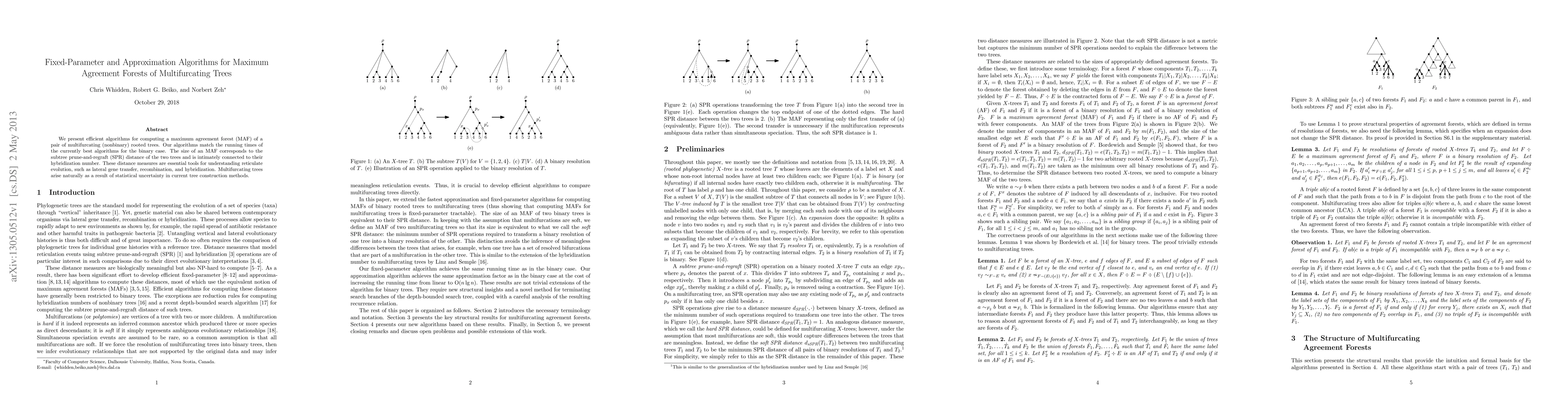 We present efficient algorithms for computing a maximum agreement forest (MAF) of a pair of multifurcating (nonbinary) rooted trees. Our algorithms match the running times of the currently best algorithms for the binary case. The size of an MAF corresponds to the subtree prune-and-regraft (SPR) distance of the two trees and is intimately connected to their hybridization number. These distance measures are essential tools for understanding reticulate evolution, such as lateral gene transfer, recombination, and hybridization. Multifurcating trees arise naturally as a result of statistical uncertainty in current tree construction methods.