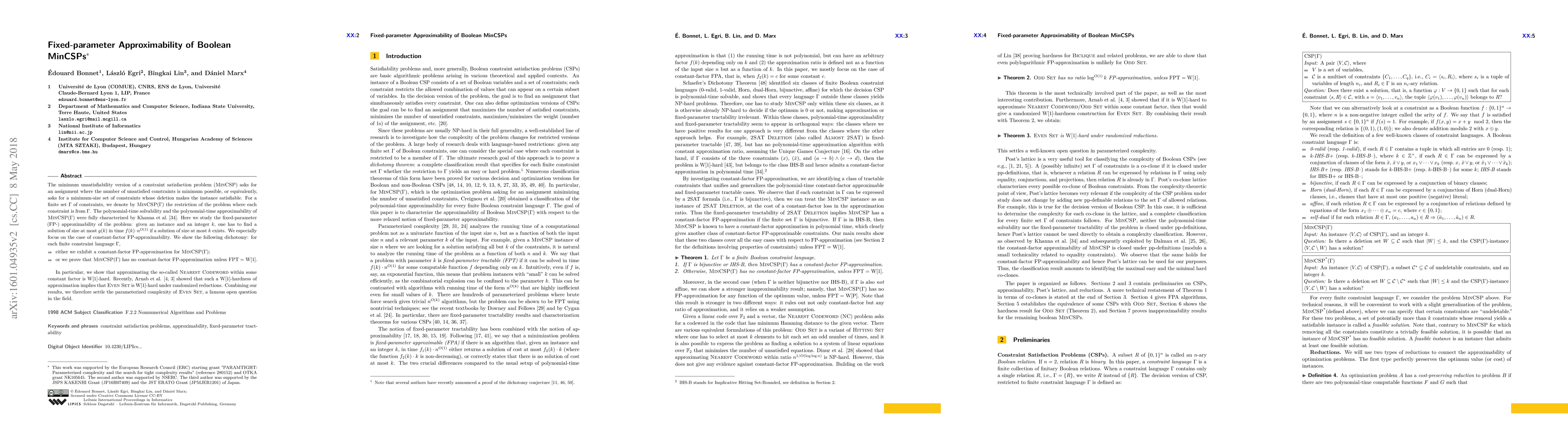 This research paper studies the fixed-parameter approximability of Boolean MinCSPs, finding a dichotomy between constant-factor approximation existence and hardness, with implications for solving famous open questions like Even Set.
