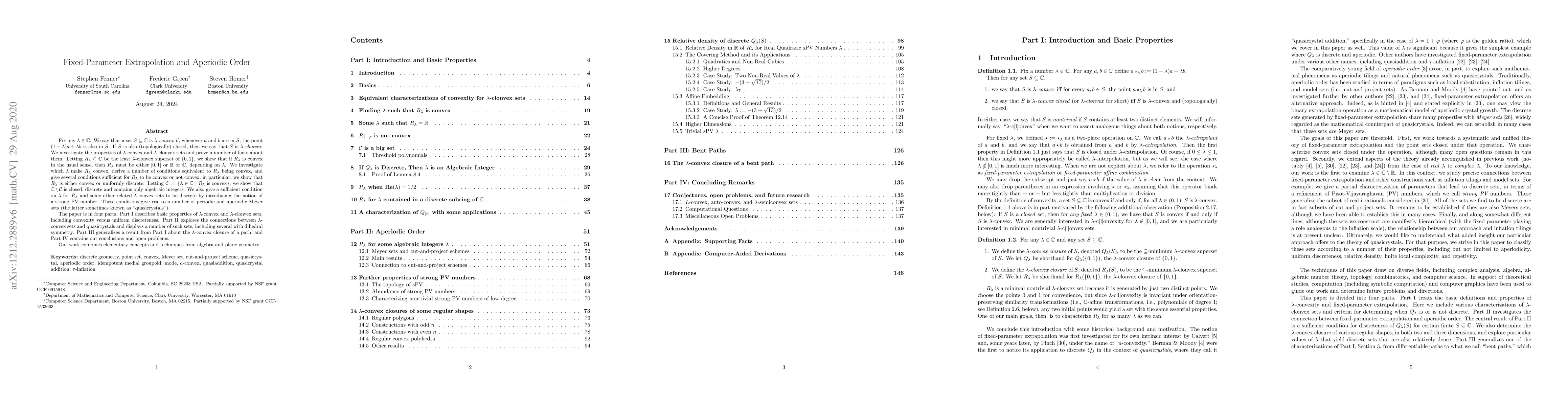 Fix any $\lambda\in\mathbb{C}$. We say that a set $S\subseteq\mathbb{C}$ is $\lambda$-$convex$ if, whenever $a$ and $b$ are in $S$, the point $(1-\lambda)a+\lambda b$ is also in $S$. If $S$ is also (topologically) closed, then we say that $S$ is $\lambda$-$clonvex$. We investigate the properties of $\lambda$-convex and $\lambda$-clonvex sets and prove a number of facts about them. Letting $R_\lambda\subseteq\mathbb{C}$ be the least $\lambda$-clonvex superset of $\{0,1\}$, we show that if $R_\lambda$ is convex in the usual sense, then $R_\lambda$ must be either $[0,1]$ or $\mathbb{R}$ or $\mathbb{C}$, depending on $\lambda$. We investigate which $\lambda$ make $R_\lambda$ convex, derive a number of conditions equivalent to $R_\lambda$ being convex, and give several conditions sufficient for $R_\lambda$ to be convex or not convex; in particular, we show that $R_\lambda$ is either convex or uniformly discrete. Letting $\mathcal{C} := \{\lambda\in\mathbb{C}\mid \mbox{$R_\lambda$ is convex}\}$, we show that $\mathbb{C}\setminus\mathcal{C}$ is closed, discrete and contains only algebraic integers. We also give a sufficient condition on $\lambda$ for $R_\lambda$ and some other related $\lambda$-convex sets to be discrete by introducing the notion of a strong PV number. These conditions give rise to a number of periodic and aperiodic Meyer sets (the latter sometimes known as "quasicrystals"). The paper is in four parts. Part I describes basic properties of $\lambda$-convex and $\lambda$-clonvex sets, including convexity versus uniform discreteness. Part II explores the connections between $\lambda$-convex sets and quasicrystals and displays a number of such sets, including several with dihedral symmetry. Part III generalizes a result from Part I about the $\lambda$-convex closure of a path, and Part IV contains our conclusions and open problems.