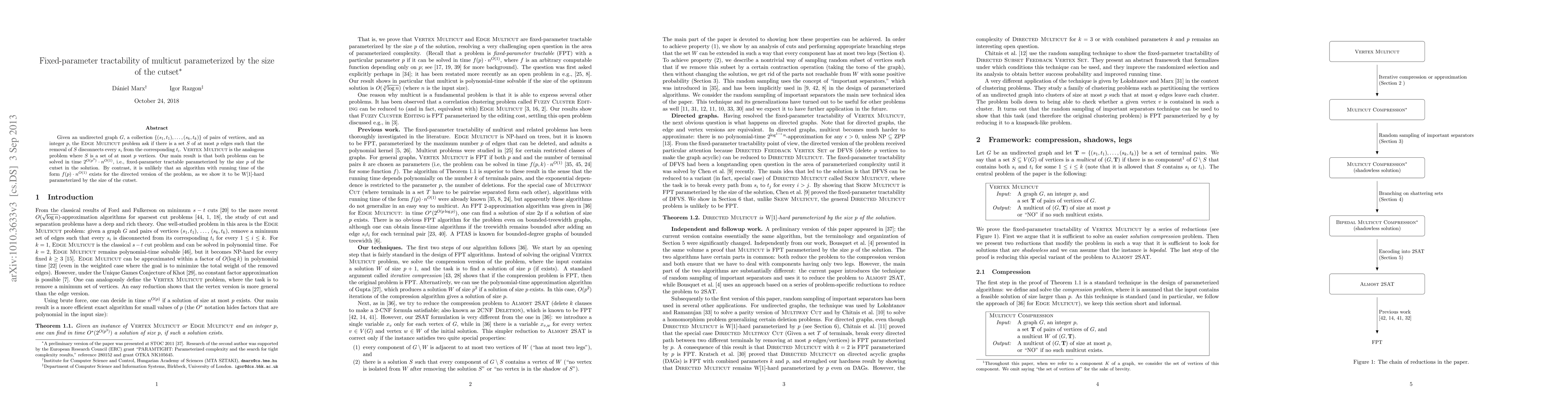 Given an undirected graph $G$, a collection $\{(s_1,t_1),..., (s_k,t_k)\}$ of pairs of vertices, and an integer $p$, the Edge Multicut problem ask if there is a set $S$ of at most $p$ edges such that the removal of $S$ disconnects every $s_i$ from the corresponding $t_i$. Vertex Multicut is the analogous problem where $S$ is a set of at most $p$ vertices. Our main result is that both problems can be solved in time $2^{O(p^3)}... n^{O(1)}$, i.e., fixed-parameter tractable parameterized by the size $p$ of the cutset in the solution. By contrast, it is unlikely that an algorithm with running time of the form $f(p)... n^{O(1)}$ exists for the directed version of the problem, as we show it to be W[1]-hard parameterized by the size of the cutset.