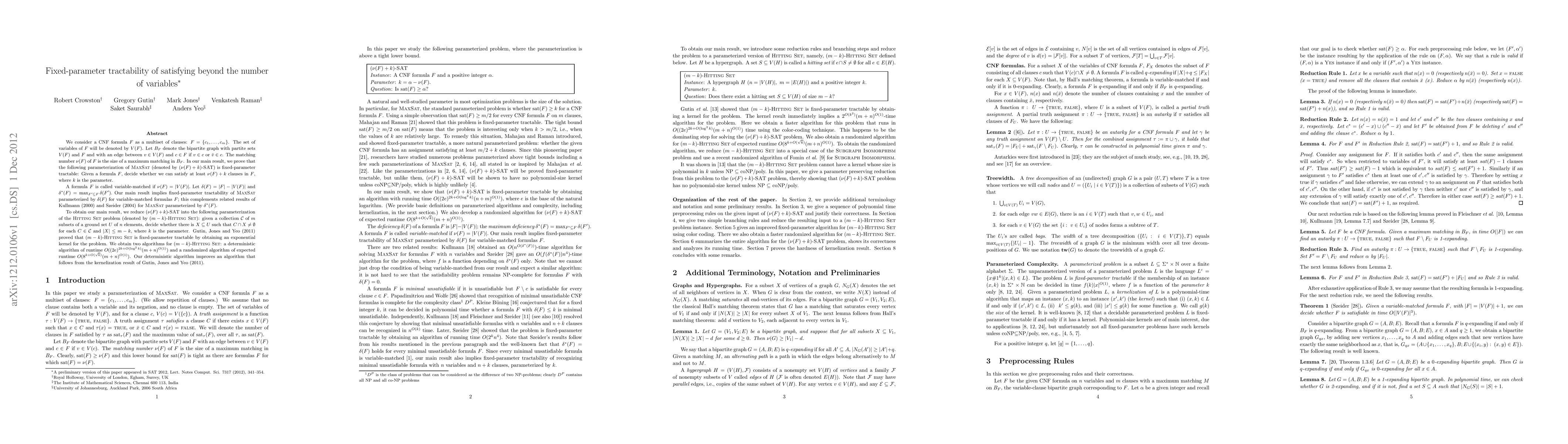 Researchers prove that a parameterized version of the MaxSat problem is fixed-parameter tractable, allowing for efficient solutions to satisfy at least a certain number of clauses in a formula, with implications for variable-matched formulas.