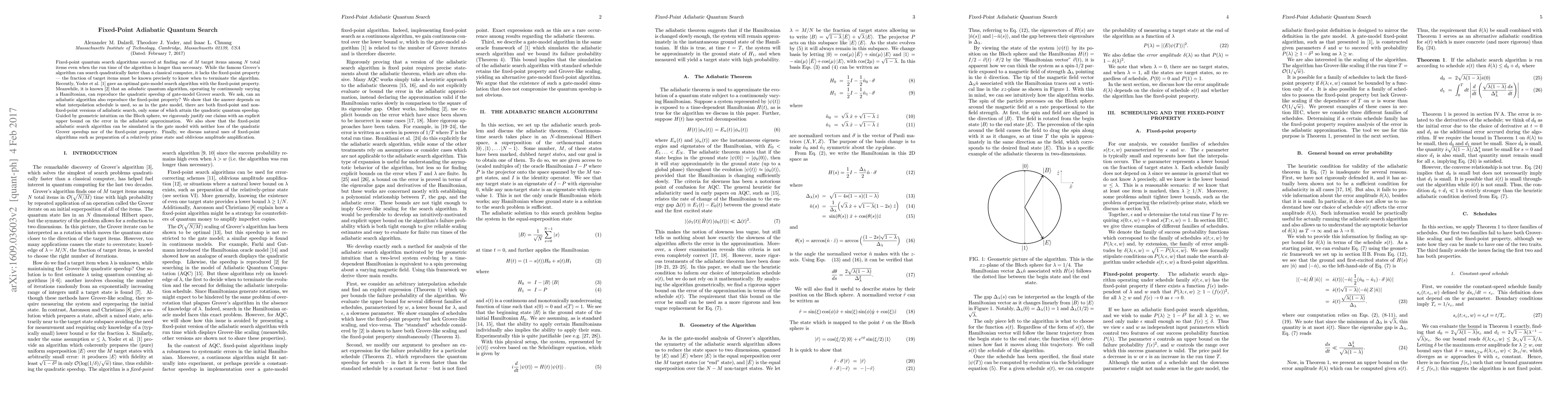 The paper investigates whether adiabatic quantum search can achieve the fixed-point property, similar to gate-model algorithms, finding that the answer depends on the interpolation schedule used. It concludes that some adiabatic algorithms maintain the fixed-point property without sacrificing the quadratic speedup, while others do not, and provides a rigorous error bound for the adiabatic approximation.