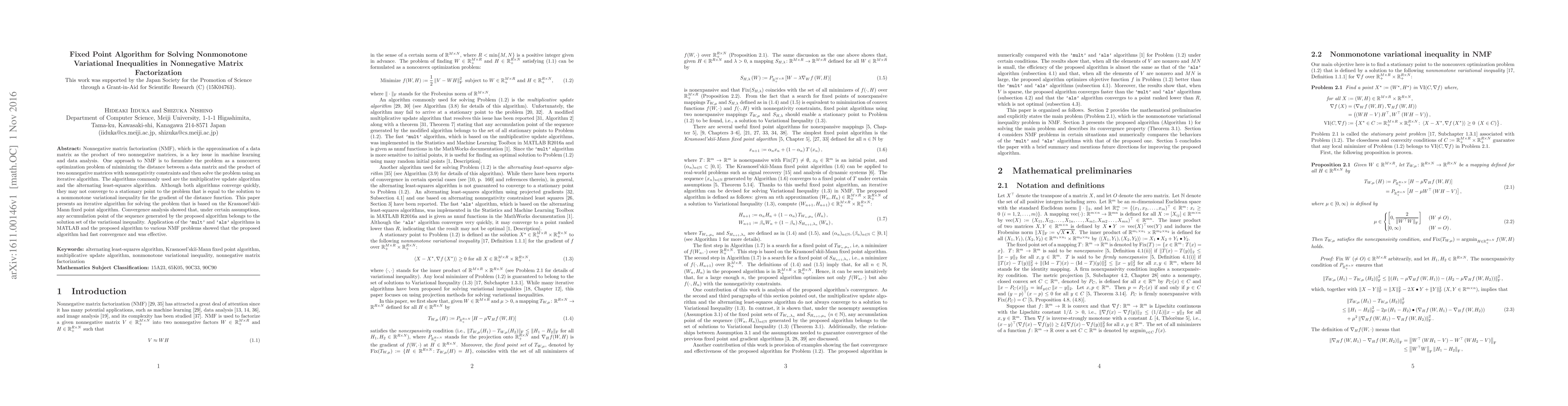 A new algorithm based on the Krasnosel'skiû-Mann fixed point algorithm is presented for solving nonmonotone variational inequalities in nonnegative matrix factorization, offering fast convergence and effective solutions.