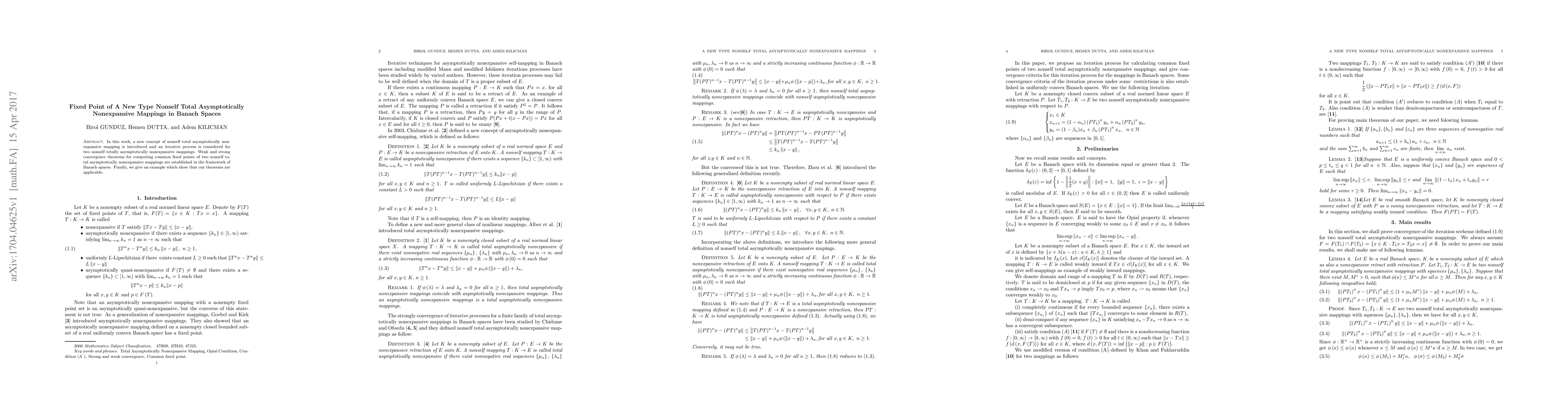 This paper introduces a novel type of nonself total asymptotically nonexpansive mapping and presents iterative processes for two such mappings. It establishes weak and strong convergence theorems for finding common fixed points in Banach spaces and provides an example demonstrating the applicability of the theorems.