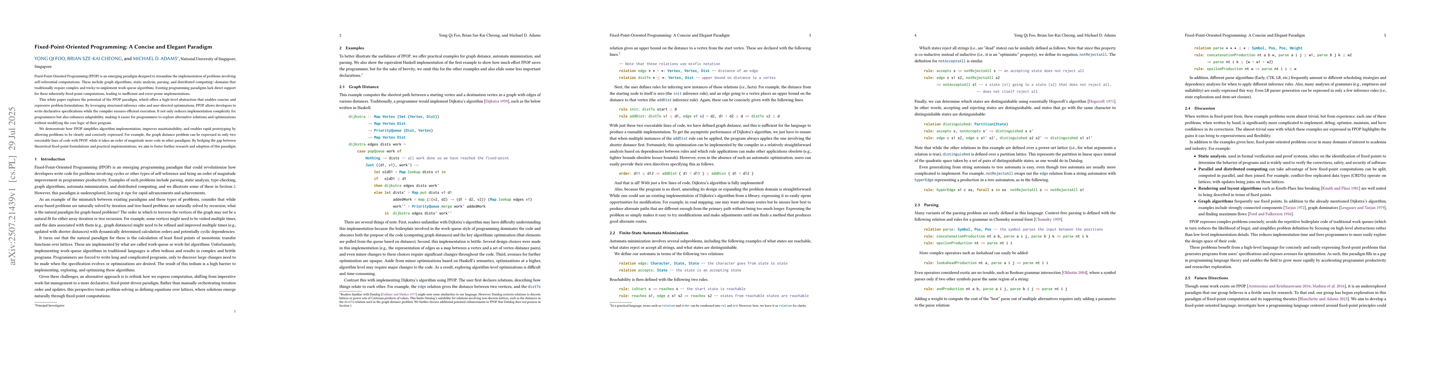 Fixed-Point-Oriented Programming (FPOP) is an emerging paradigm designed to streamline the implementation of problems involving self-referential computations. These include graph algorithms, static analysis, parsing, and distributed computing-domains that traditionally require complex and tricky-to-implement work-queue algorithms. Existing programming paradigms lack direct support for these inherently fixed-point computations, leading to inefficient and error-prone implementations. This white paper explores the potential of the FPOP paradigm, which offers a high-level abstraction that enables concise and expressive problem formulations. By leveraging structured inference rules and user-directed optimizations, FPOP allows developers to write declarative specifications while the compiler ensures efficient execution. It not only reduces implementation complexity for programmers but also enhances adaptability, making it easier for programmers to explore alternative solutions and optimizations without modifying the core logic of their program. We demonstrate how FPOP simplifies algorithm implementation, improves maintainability, and enables rapid prototyping by allowing problems to be clearly and concisely expressed. For example, the graph distance problem can be expressed in only two executable lines of code with FPOP, while it takes an order of magnitude more code in other paradigms. By bridging the gap between theoretical fixed-point formulations and practical implementations, we aim to foster further research and adoption of this paradigm.