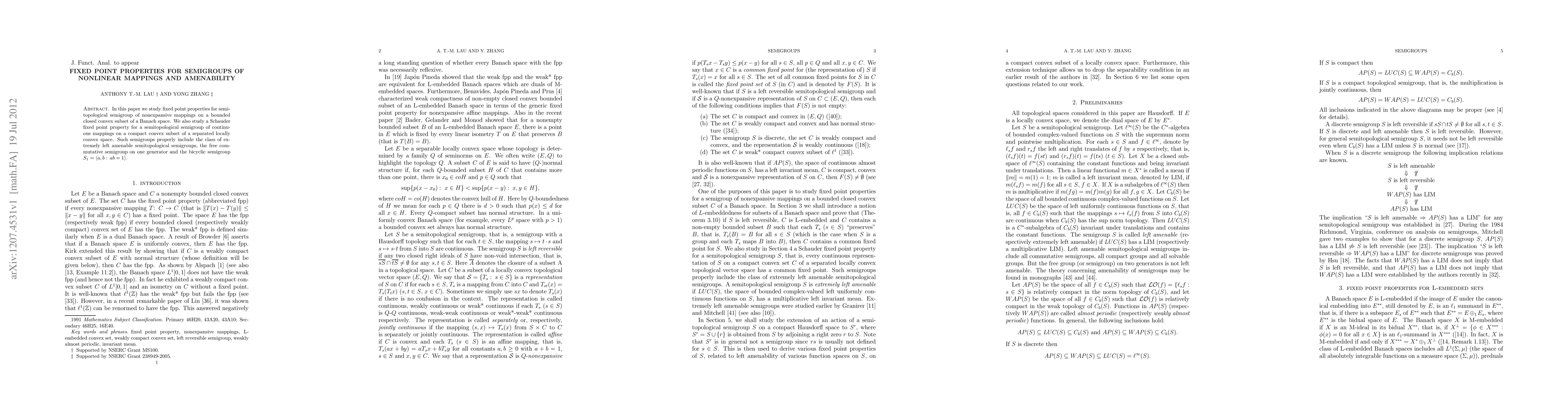 This paper investigates fixed point properties for semitopological semigroups of nonexpansive mappings on Banach spaces, and explores a Schauder fixed point property for continuous mappings on compact convex subsets of locally convex spaces, including extremely left amenable semigroups and the bicyclic semigroup.