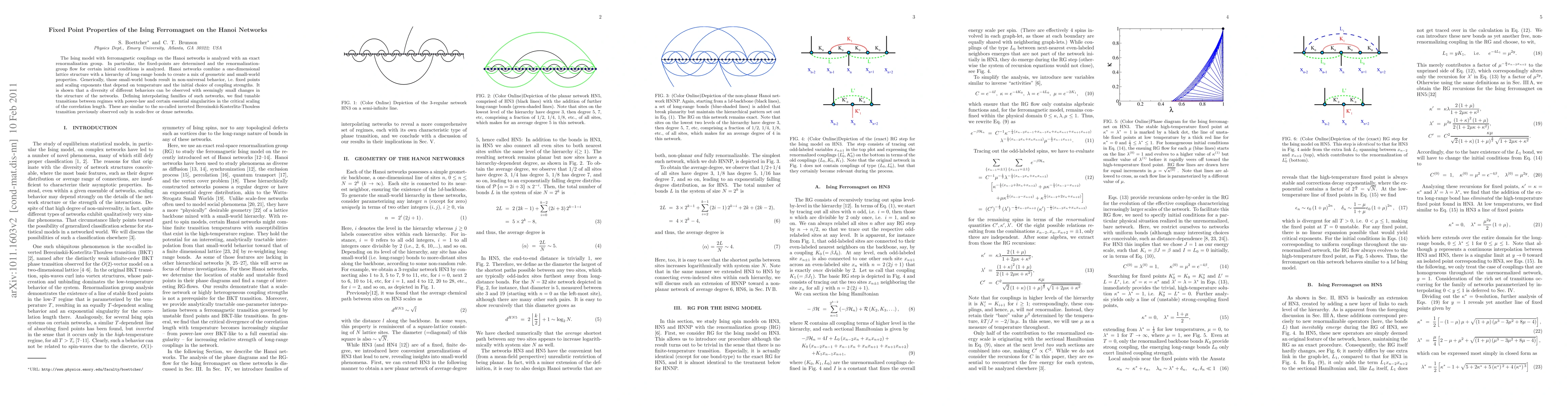 Researchers analyze the Ising model on Hanoi networks using renormalization group, finding tunable transitions between regimes with power-law and essential singularities in critical scaling, offering a new understanding of fixed points and behavior.