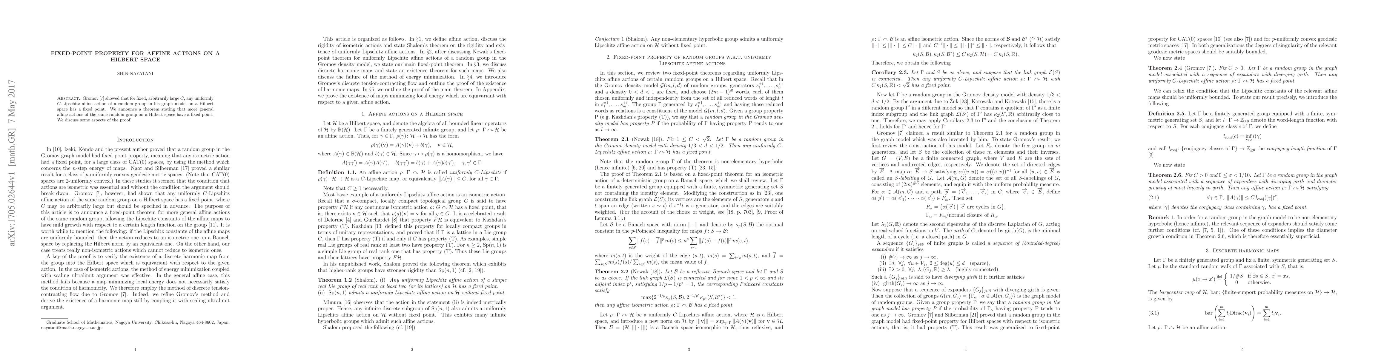 Summary: Gromov's theorem on fixed points for uniformly Lipschitz affine actions of random groups in Hilbert spaces is extended to more general affine actions. The proof of this extension is discussed, highlighting its implications.